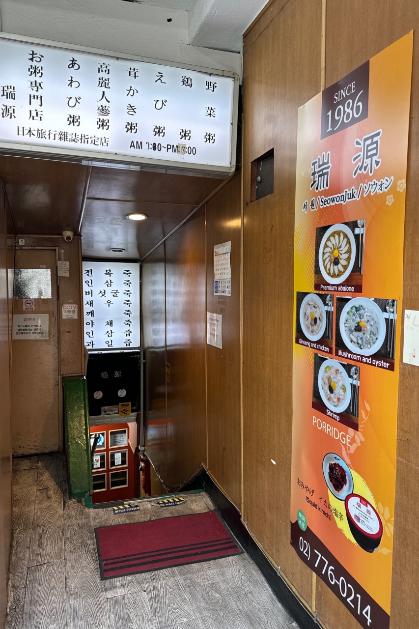 ソウルの中心部、明洞にある人気の鮑粥のお店です。