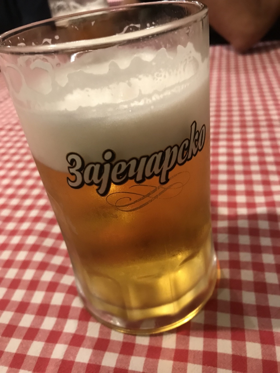 ビールは,滞在中に大鹿マークのYelenビールとZaječarskoビールを飲んだけど,ま,味の違いは分からないとして,値段が安く,いい気になってぐいぐい飲めるのがセルビアのいいところだ。塩分とプリン体,長期滞在は無理そうだが,なんにしても肉肉しい料理に囲まれていっぱい飲んだ度でした。