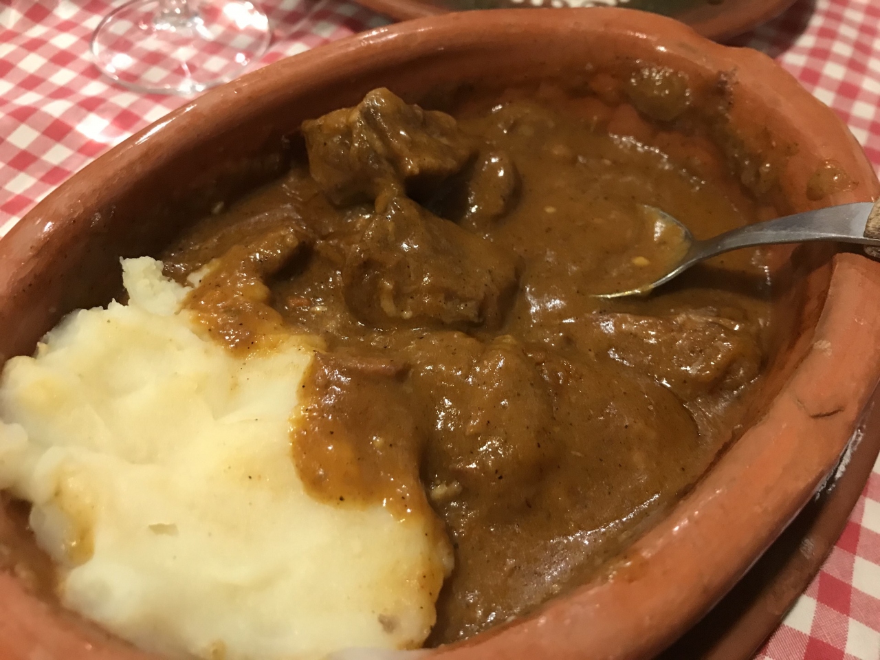 セルビアは物価が安い。レストランに入っても,あまり値段を気にすることなく食事ができる。長く続く円安のせいですっかり出張メシはメニューに書いてある値段とにらめっこだったけど,ベオグラードは気軽にレストランに入ることができる感じだ。私はベオグラードは初めてだったし,観光でもないので,とりあえず仕事が終わってさぁ出張メシということで同僚と入ったレストランがこのお店だった。ベオグラード料理に関心があるわけではなかったけど,これまで食べたことのあるハンガリーやウィーンのグーヤシュとセルビアのグーヤシュを比べたかったし,北マケドニアのスコピエの市場の露店で食べたチェヴァプチチ(ケバブみたいなやつ)が懐かしく,それを求めてこのお店の入った。