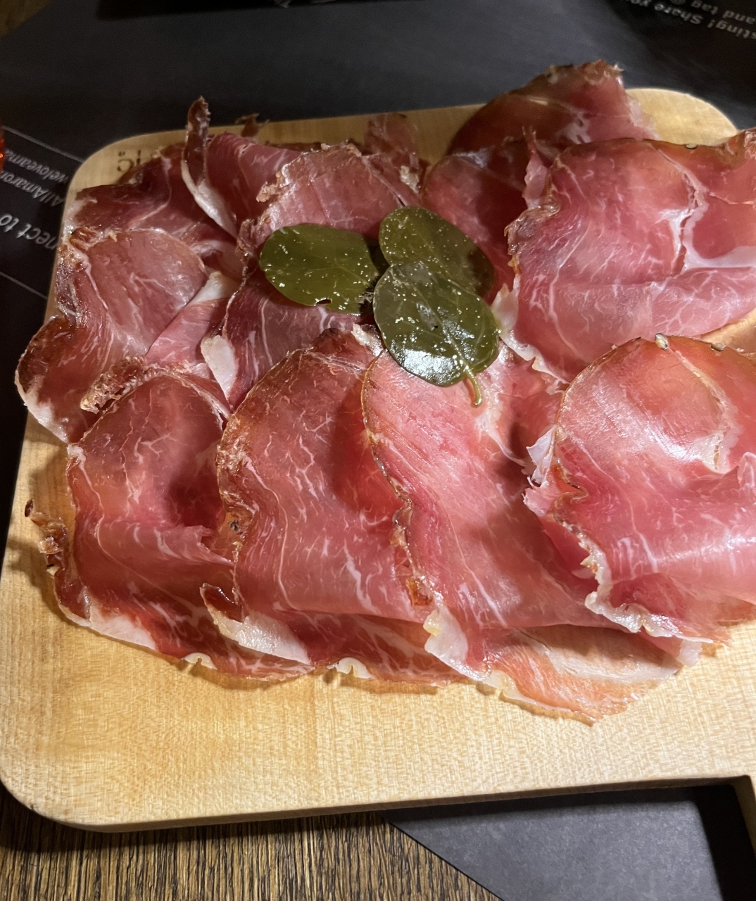 ヴェネツィア料理というよりは、エミリアロマーニャ料理で、生ハムやサラミなどが美味しいです。おつまみ以外に、温かい料理もあります。