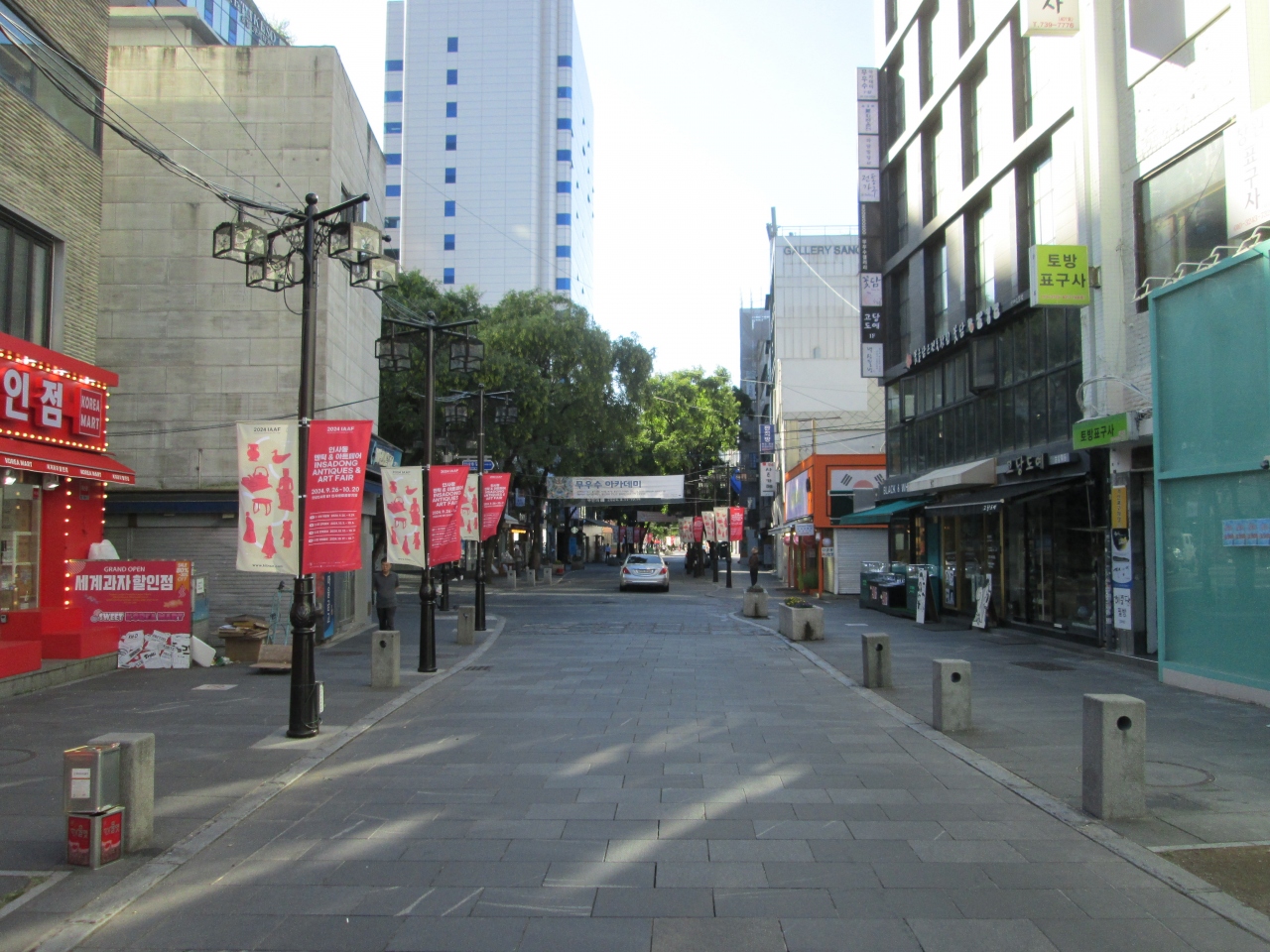 仁寺洞は韓国伝統の町並みを残すところです。今回、ソウルの街で外国人観光客を多く見かけた町でした。陶磁器、仮面、布、韓紙、書に関するものなど伝統工芸品を扱ったお店があります。お土産は明洞より安く、韓国ならではのものが購入できると思います。