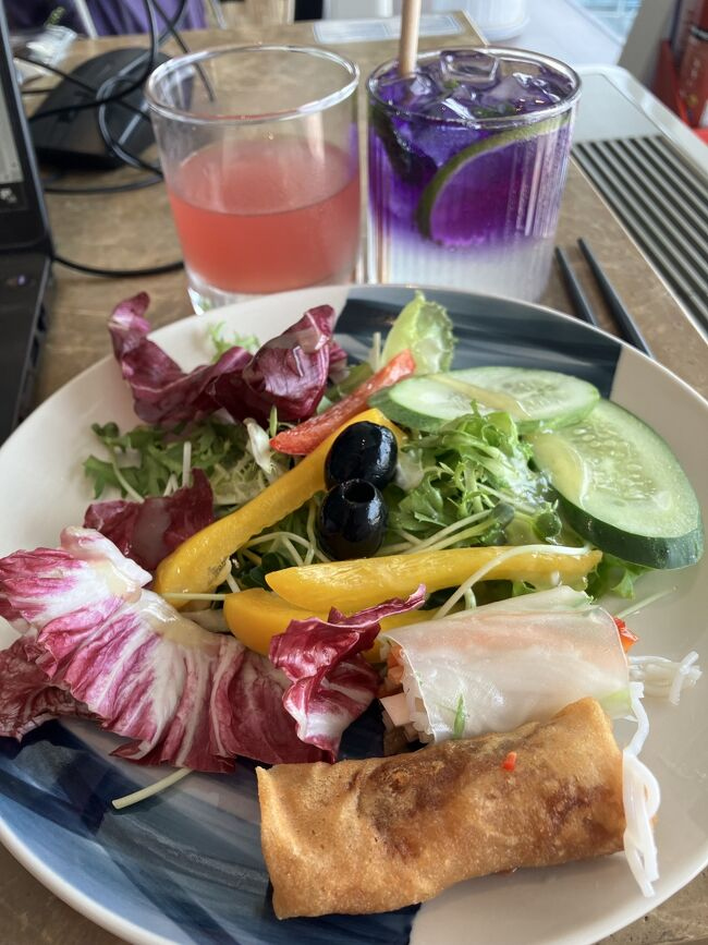 サラダに生春巻きに、バタフライピーモヒート。