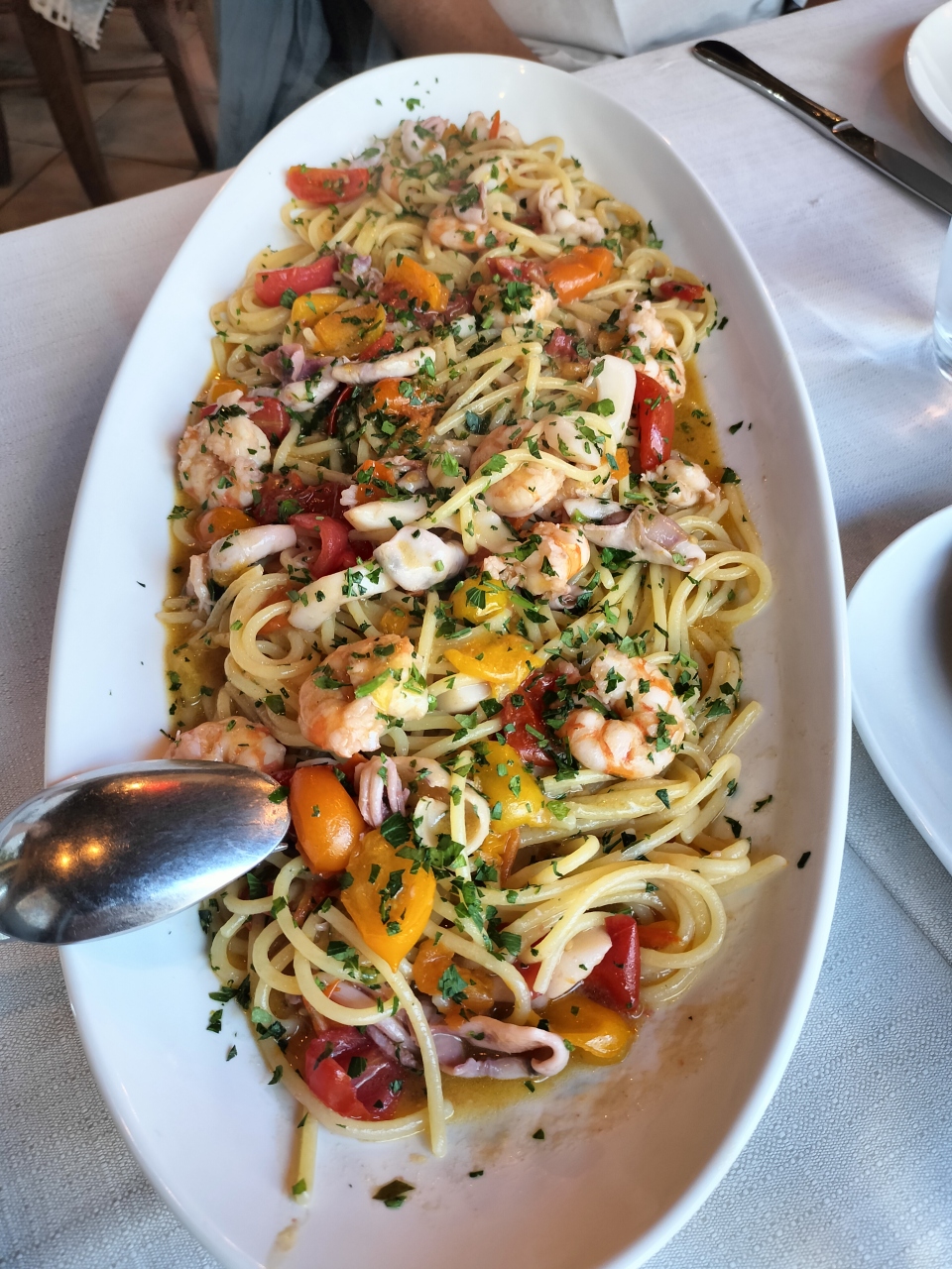 私たちは海鮮パスタをいただきました。