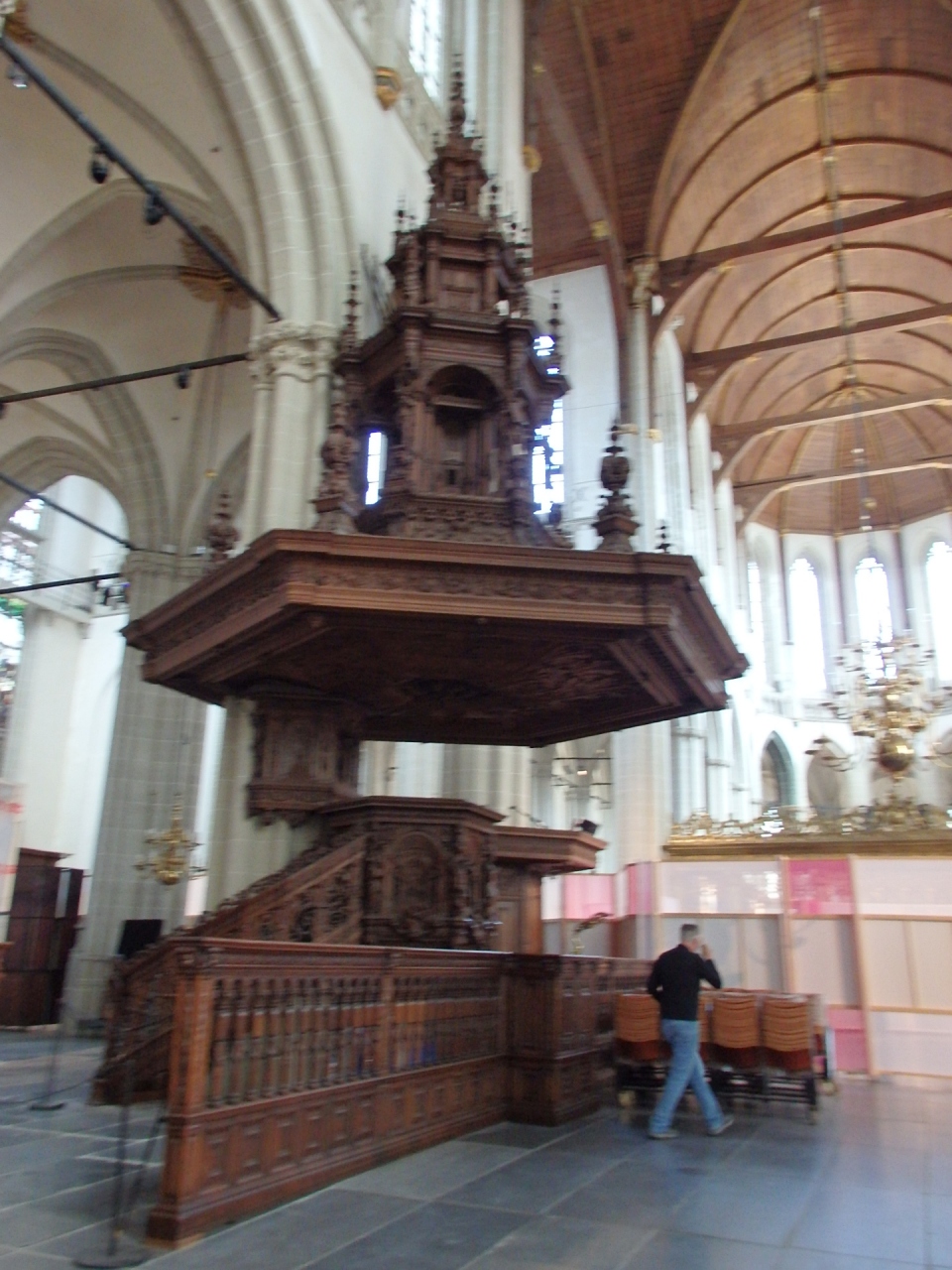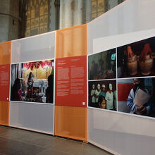 教会内のステンドグラスや彫刻、レリーフ、木製の説教壇など素晴らしいが多いのですがイベント中はいろいろなパネルがあって、全部の内装を見ることができない部分もありました。