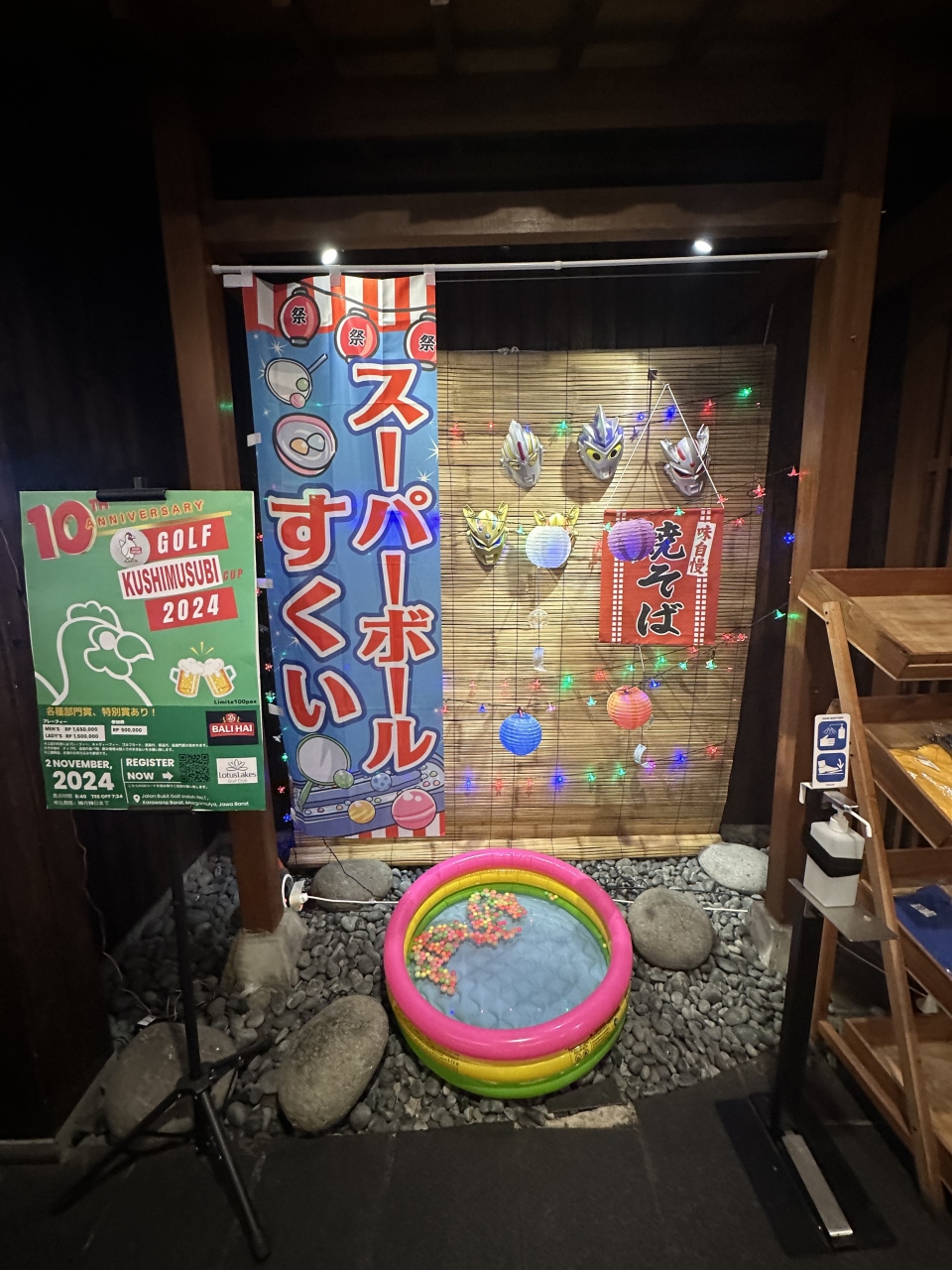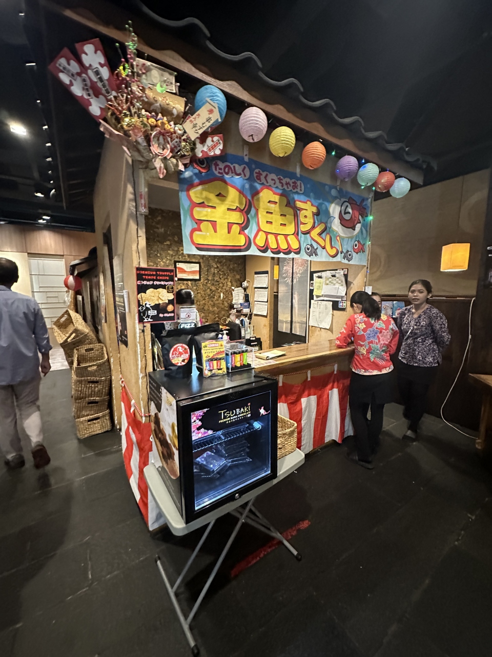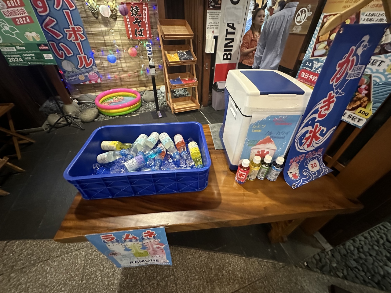 入口には、昔の日本の屋台がおいてあり、昭和のおもちゃやら、ラムネなんかが売られている…素敵な光景。