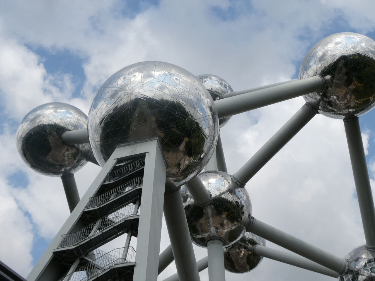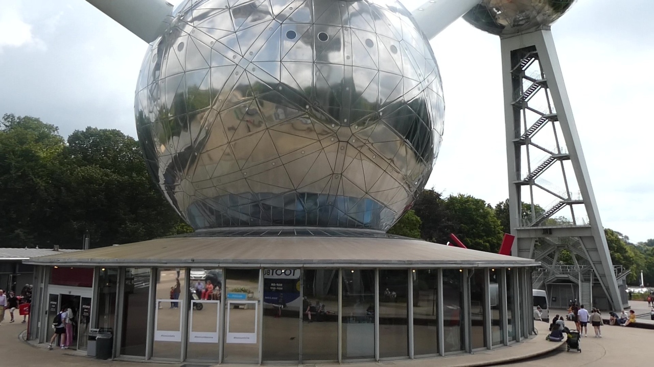アトミウムは、1958年に開催されたブリュッセル万博のシンボルとして建設されたモニュメントで、直径18mの球体が金属チューブで結合されています。鉄の原子構造を模しているとのことです。最上部の球体内は展望レストランになっており、チューブの中に設置されたエスカレータで球体が接続されています。入場料は大人14 Euro(2024年7月)。