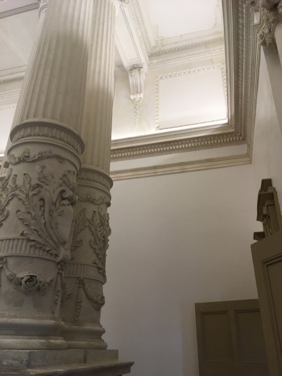 王宮のような外観で、赤い煉瓦は少なめで、メインはコンクリートの柱とコンクリートの壁、アーチになっています。夜にはライトアップされます。柱の彫刻は外部だけでなく、内部の柱にも施されていて、あまりにも豪華です