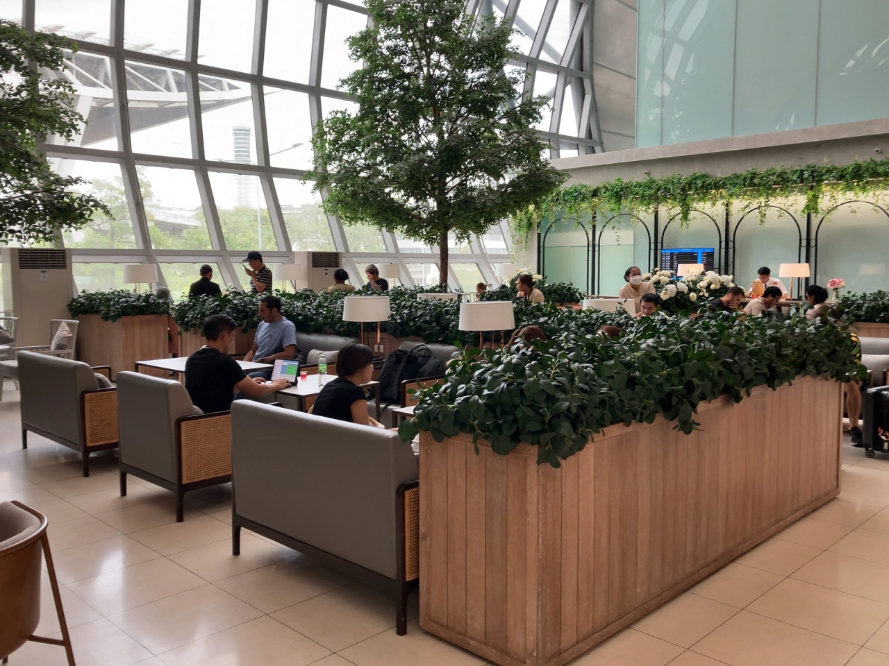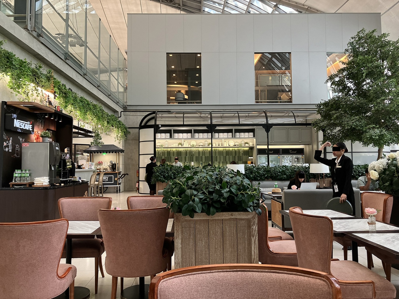 - 基本、空港ラウンジはセルフサービスのはずが、こちらではアルコールはもちろん、コーヒーまで煎れて座席まで運んでもらえました…びっくり!
