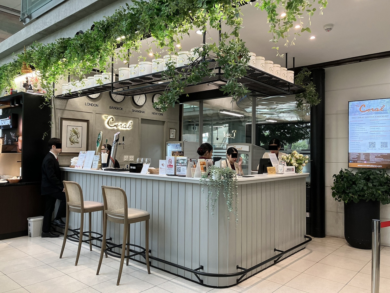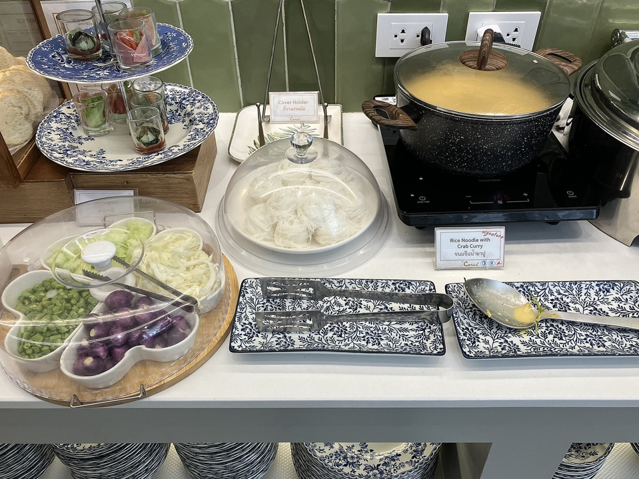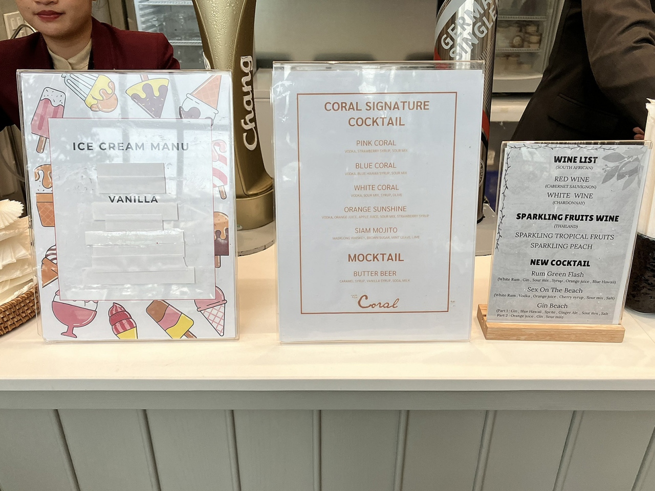 タイ航空搭乗時はタイ航空のラウンジを利用してアイスクリームやお菓子を楽しみ、バンコクエア搭乗時にはバンコクエアのラウンジで食事を注文して静かな雰囲気を満喫していますが、今回はコーラルエグゼクティブラウンジを利用してみました。この場所は以前利用したことがあるような・ないような…ひょっとして、以前は違うブランドのラウンジであったかも…と記憶があいまいなので、初利用としておきます。このラウンジで特別感を感じたのはスタッフの数と手厚いサービスです。お酒はもちろん、コーヒーまでもテーブルまで運んでもらえます。紅茶の屋台を「なんだろう?」と見ていたら、すぐに「何を召し上がりますか?」と声が掛かります。空港のラウンジって、基本セルフサービスである中、このラウンジサービスは稀有な存在です。タイ人、こういったラウンジ好きでしょうねぇ。
