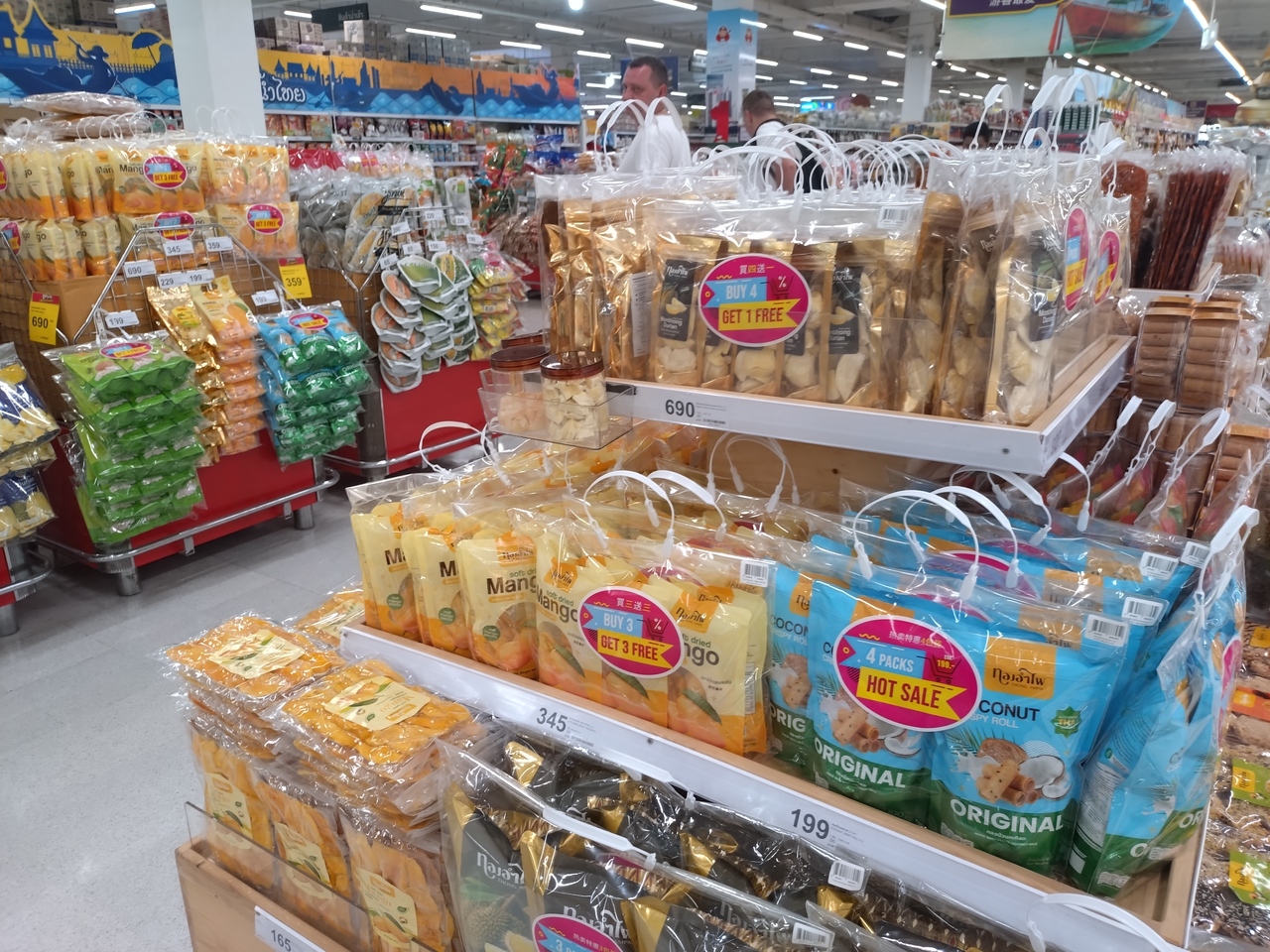 地下が食品売り場です。とても広く、品揃え豊富。お菓子売り場へ行ってみると、ものすごい数のお土産用のお菓子、特にドライフルーツ系が充実しており、おそらく果物大好きな中国人観光客を狙ってかと、、、中国人団体もいましたね。