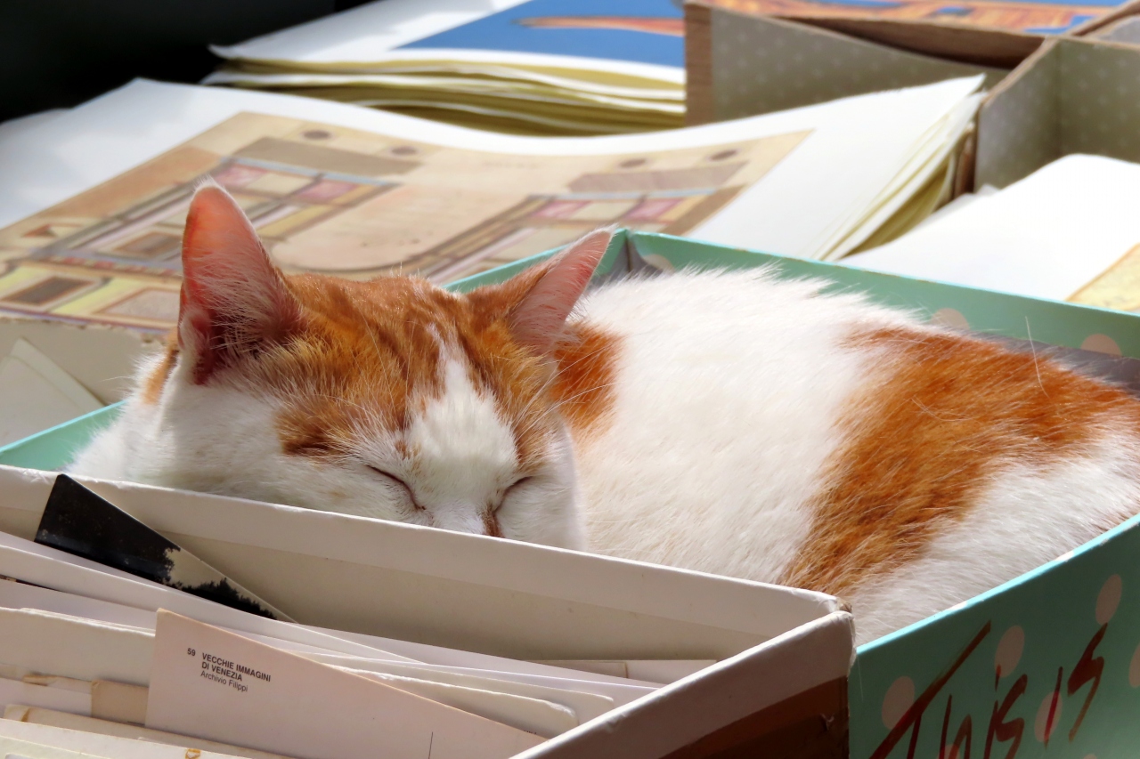 たまたま通りかかって、覗いてみました。店内はやや薄暗く、本の陳列も乱雑で、書店というよりは、観光スポットの一つという感じです。お店の中央にゴンドラを置いて本をディスプレイしてみたり、店頭には看板娘ならぬ看板猫がいたりして、それが珍しくて人が集まっているようでした。