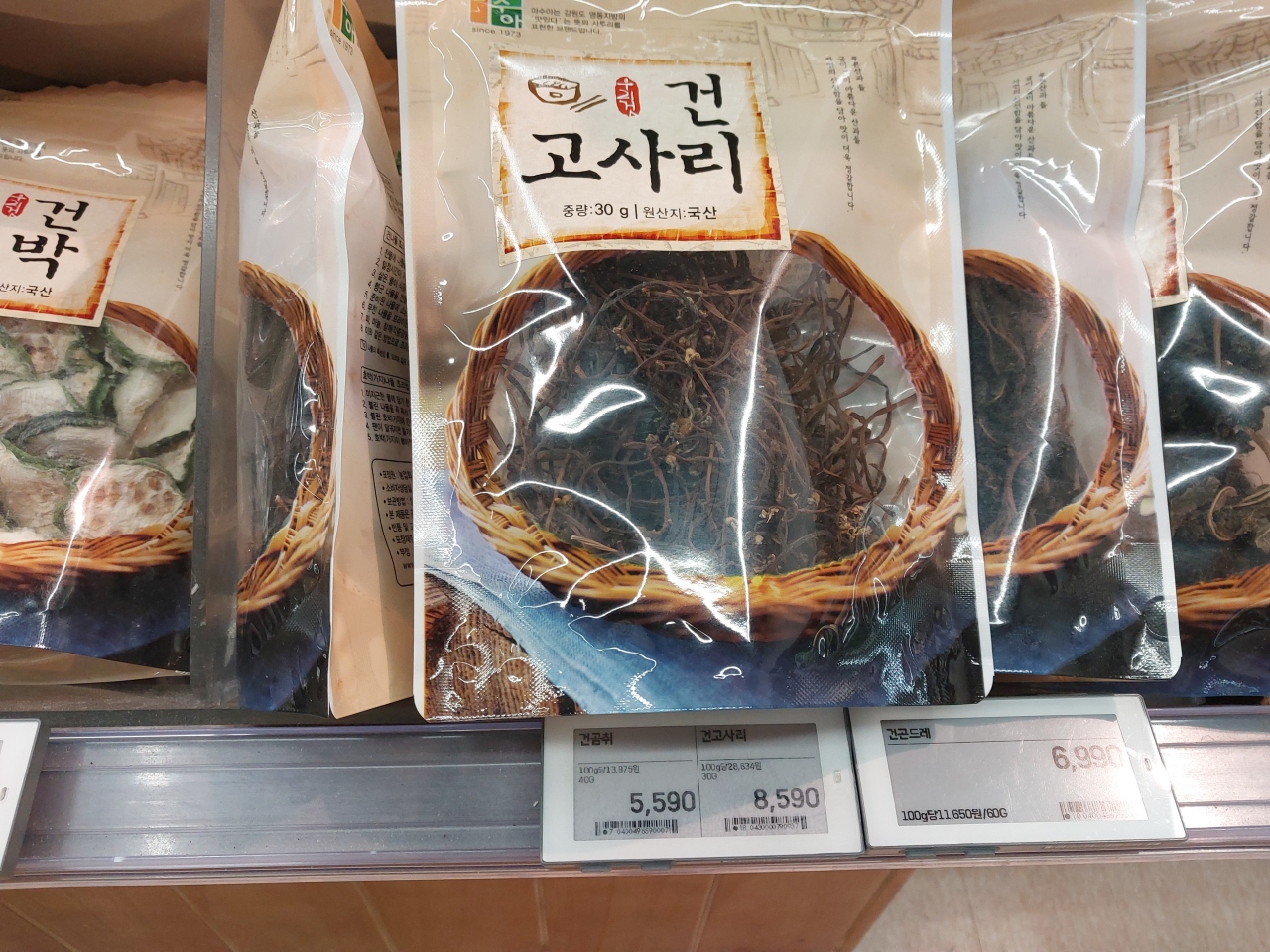 金浦空港にあるけど、地元の人向けの品揃えで、あまりお土産になるようなものはありませんでした。ソウル駅のロッテマートに比べると箱菓子やラーメンも少なく、代わりに生鮮食品や乾物など地元の人が買う商品が多かったです。