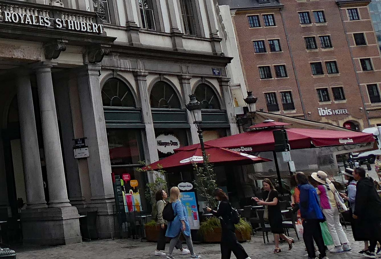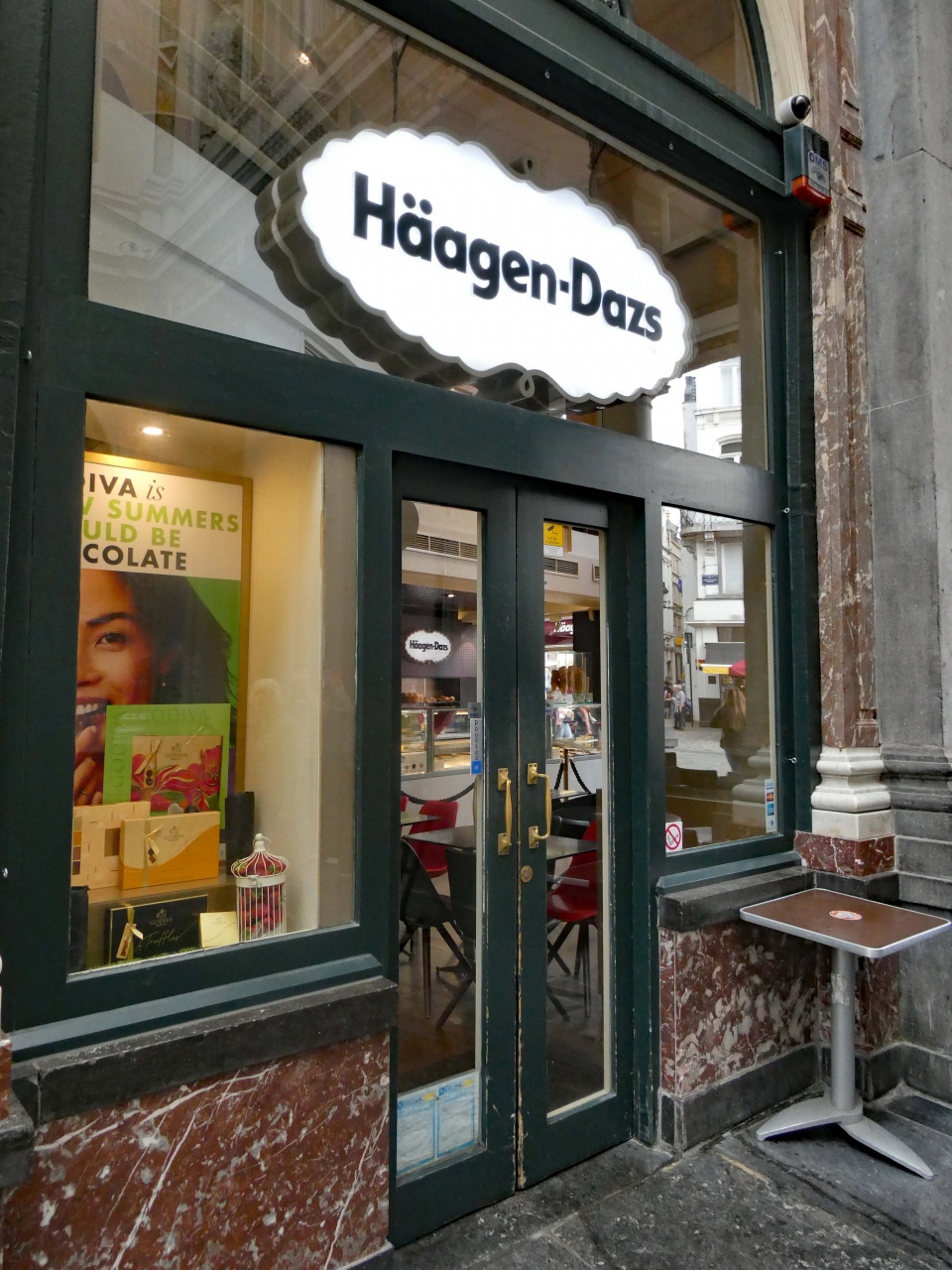 ギャルリ・サンチュベールのグランプラス側入り口右手にハーゲンダーツのお店があります。JAL機内食に出てくる小カップ入りハーゲンダーツは馴染みですが、このお店では多種類のアイスクリームから好みを選んでコーンカップに盛り付けてくれました。店内席と屋外席がありますが、大部分のお客さんはカップを持って歩きながら食べていました。値段は高めですが、印象に残る美味しさでした。