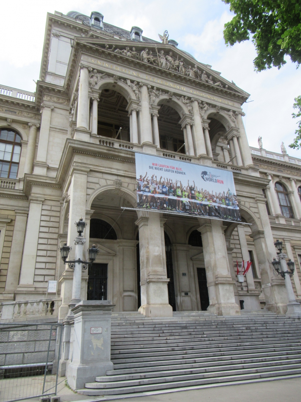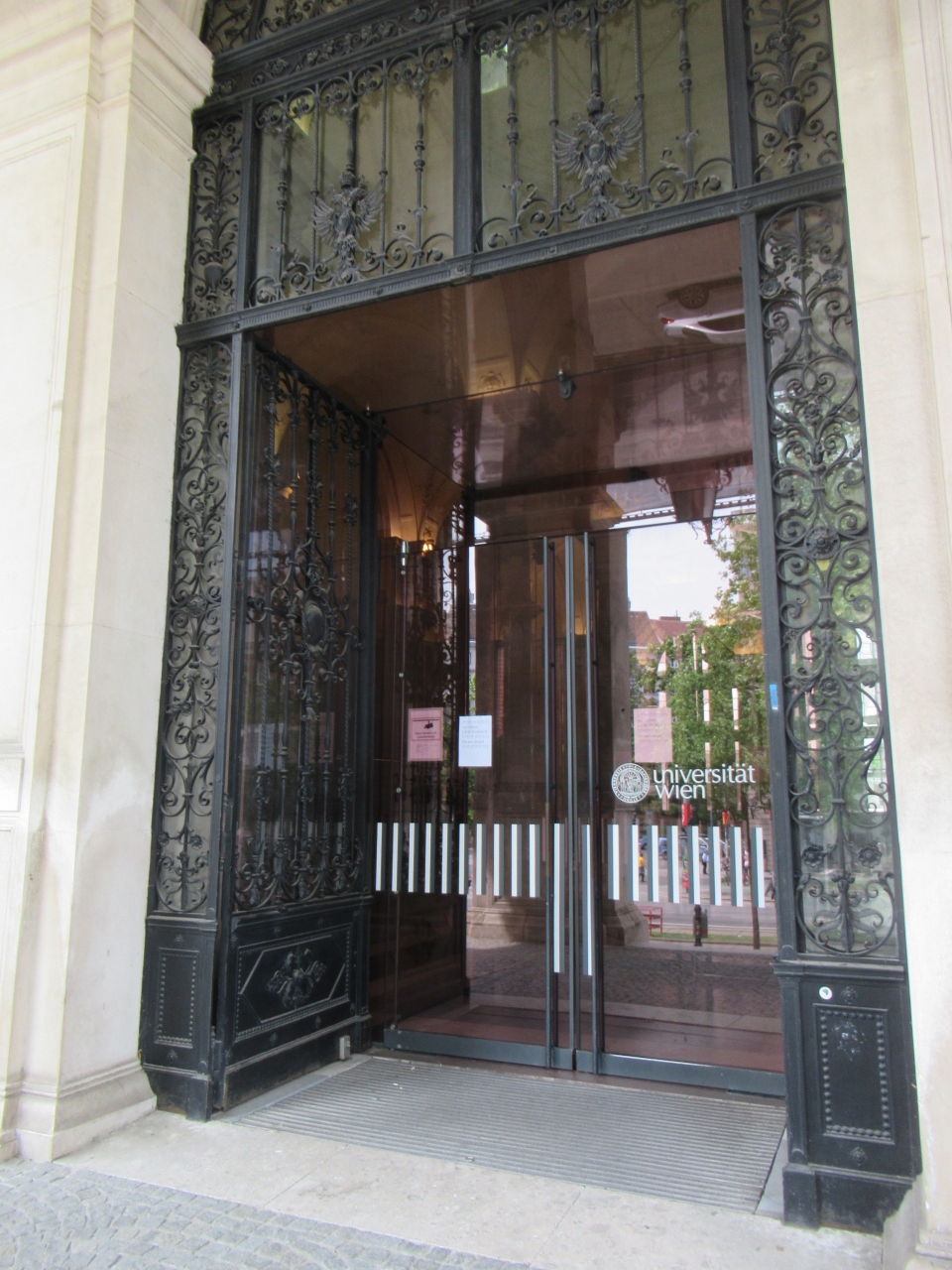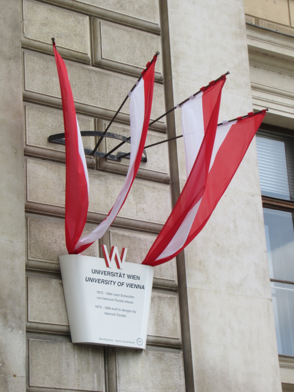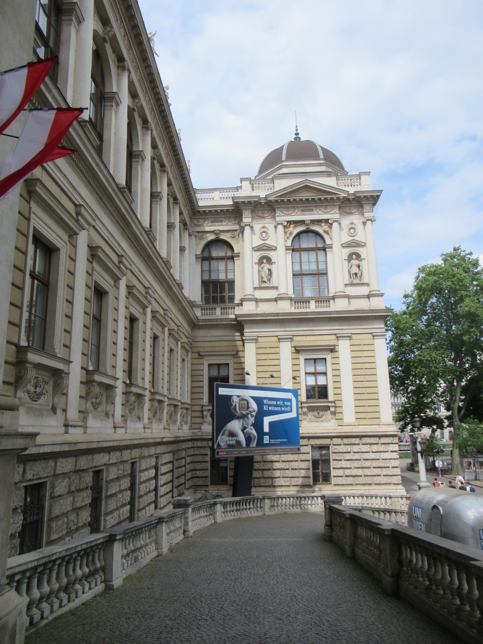 ウィーン大学の建物は、リンク通りに面した他の建物と違って前に広場がなく、これは学生がバリケードを築きにくいようにするためだそうです。
