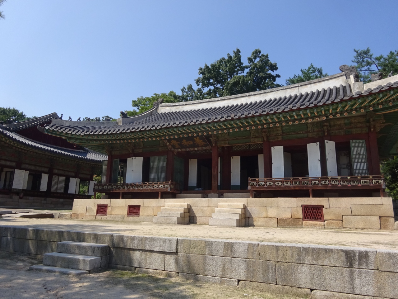 ソウルの養和堂です。昌慶宮の中の建物で、東側から迎春軒、集福軒と見ていった後に、少しスペースをおいて、こちらの養和堂があります。そこまで、どっしりとした大きな建物ということではありませんが、階段が重なって少し高台になっておる、落ち着いた印象の建造物だと思います。