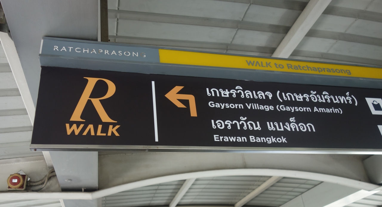 BTS線路下のSKY WALKはR-WALKになってました。BTSチットロム駅からサイアム駅までの線路下のうをーキングブリッジはゲイソンビレッジ・セントラルワールド・サイアムパラゴン・ビックCなどバンコク中心部のショッピングモールを結ぶ便利な路です。