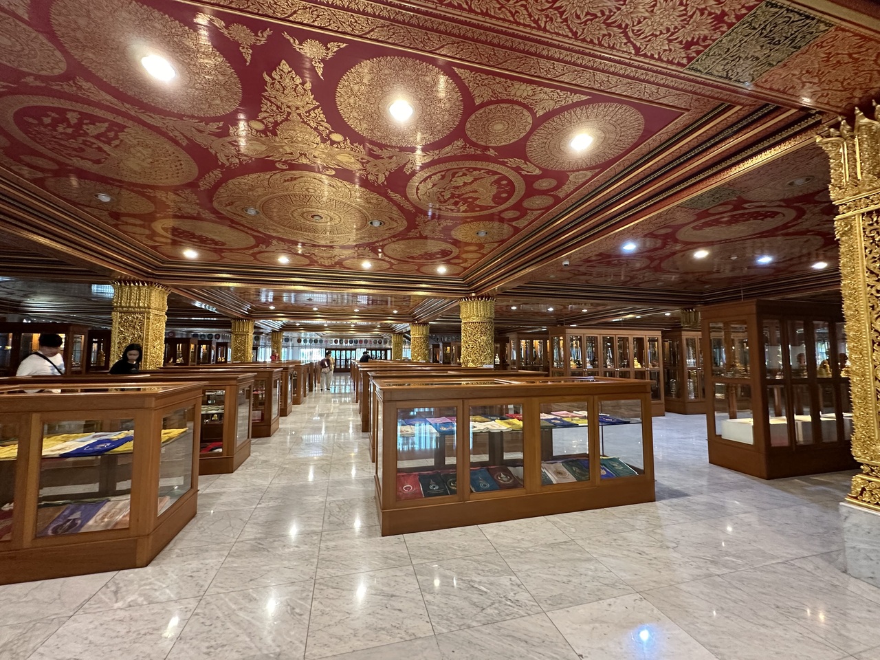 大仏塔は高さ約80mの5階建て、(お年寄りは1階からエレベーターがベター)、1階はタイ芸術/文化遺産の展示階、2階は瞑想部屋、3階は博物館(ショールームに飾り物が沢山)、4階は本堂とルアン・ポーソッド師の像、5階にはSNS映えの「仏舎利奉安塔」となる。