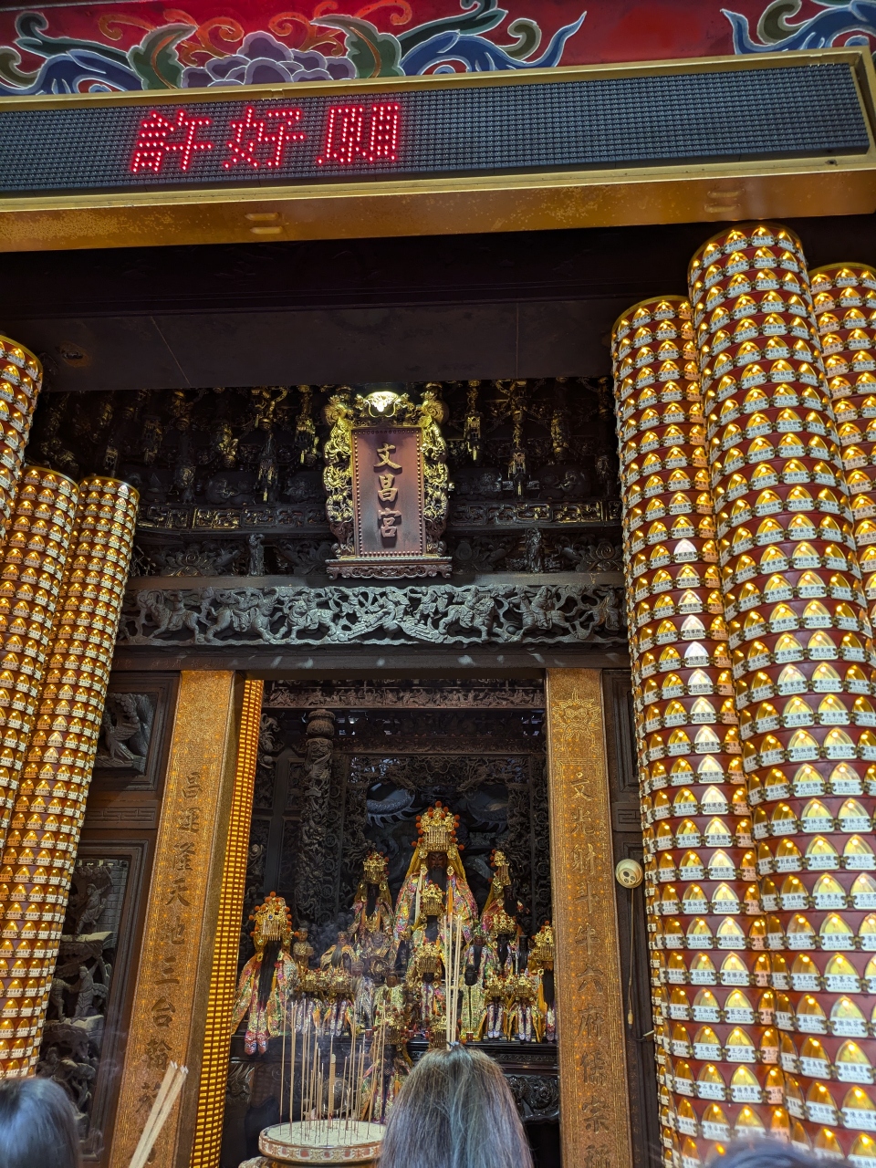 狭い本堂の中金でピカピカです。なんの神様かはわからなかったです。