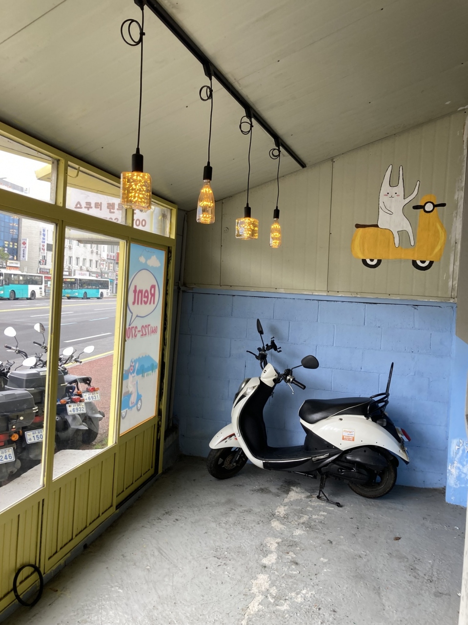済州総合バスターミナルの右手横並びにある小さなお店のマンゴースクーターで3泊4日バイク借りました。