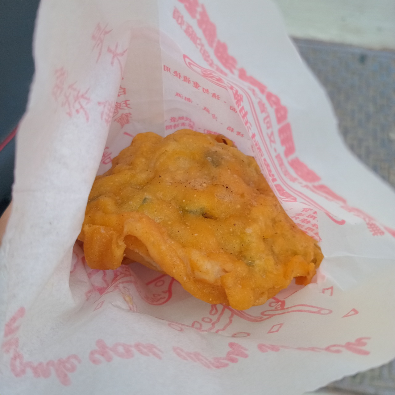 3月ぶりの再訪です。高雄市内にある三民市場です。ホテルから高雄車駅へ向かう途中の通り道で、朝食を調達に。かき揚げ的な物、40元を購入。揚げたてで美味しかったです。