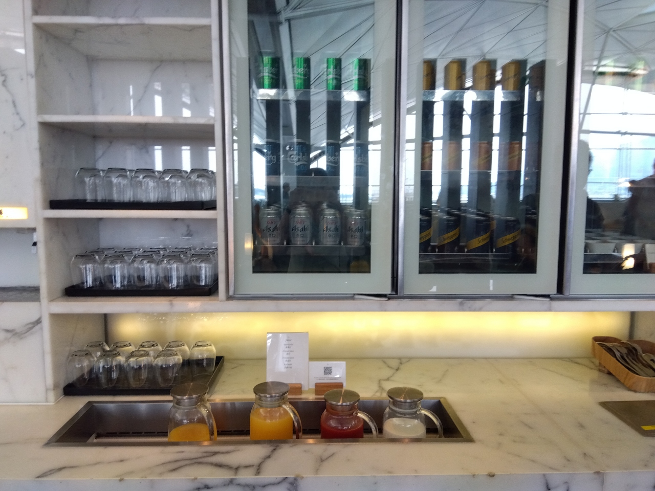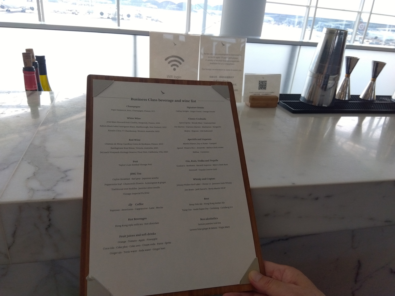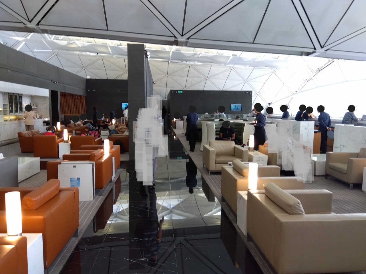 香港国際空港にあるビジネスクラスが利用できる3つのラウンジの中ではカジュアルな雰囲気で、全体的に明るかったです。