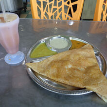 ドーサが食べてみたかったので、店員さんにおすすめされたマサラドーサを頂きました。辛くないように作ってくれましたが結構な辛さ。このくらいは辛いに入らないんでしょう。