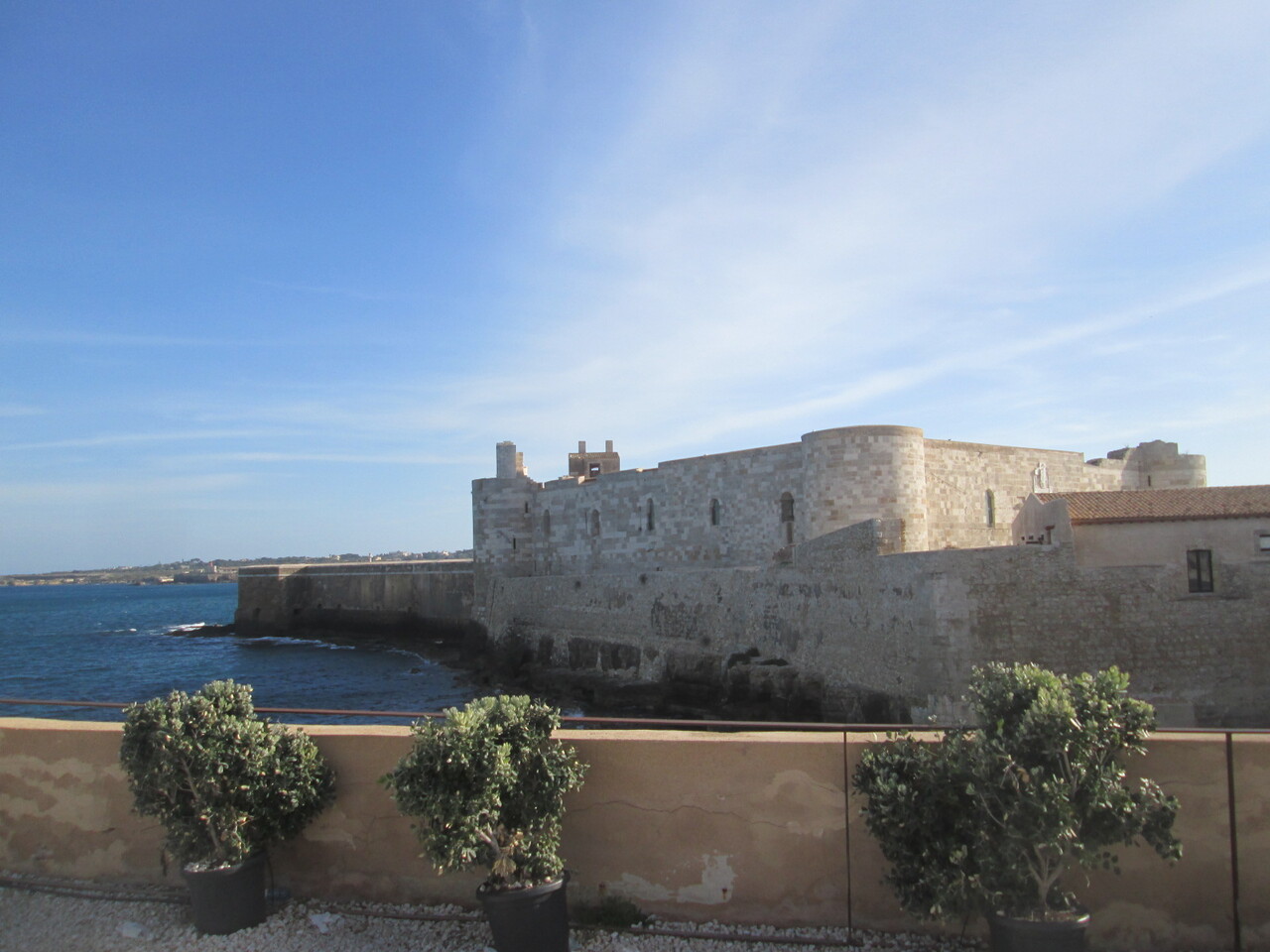 オルティージャ島の街歩きで、先端の岬部分にそびえるお城です。