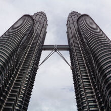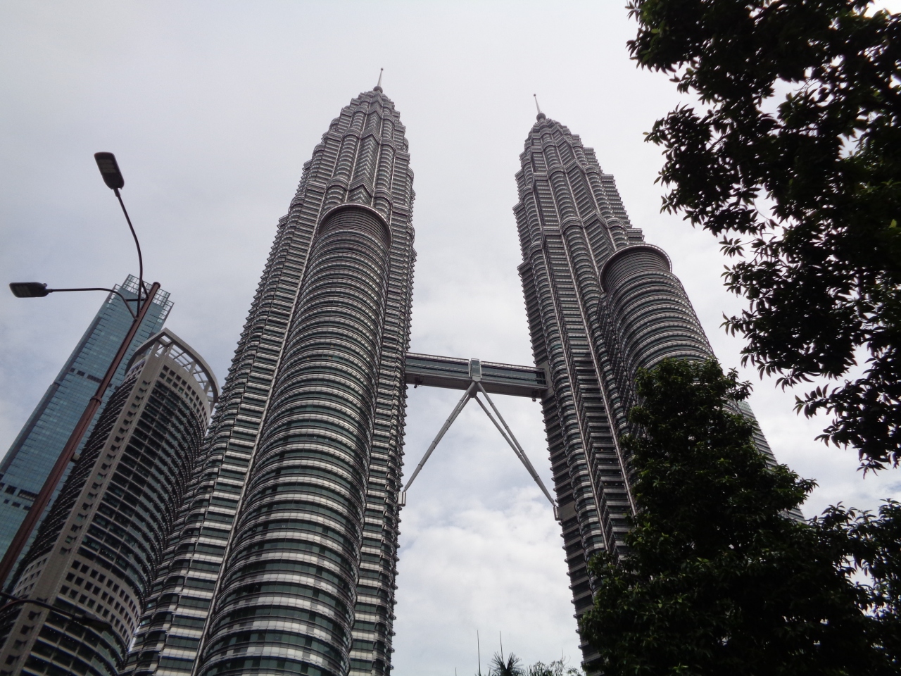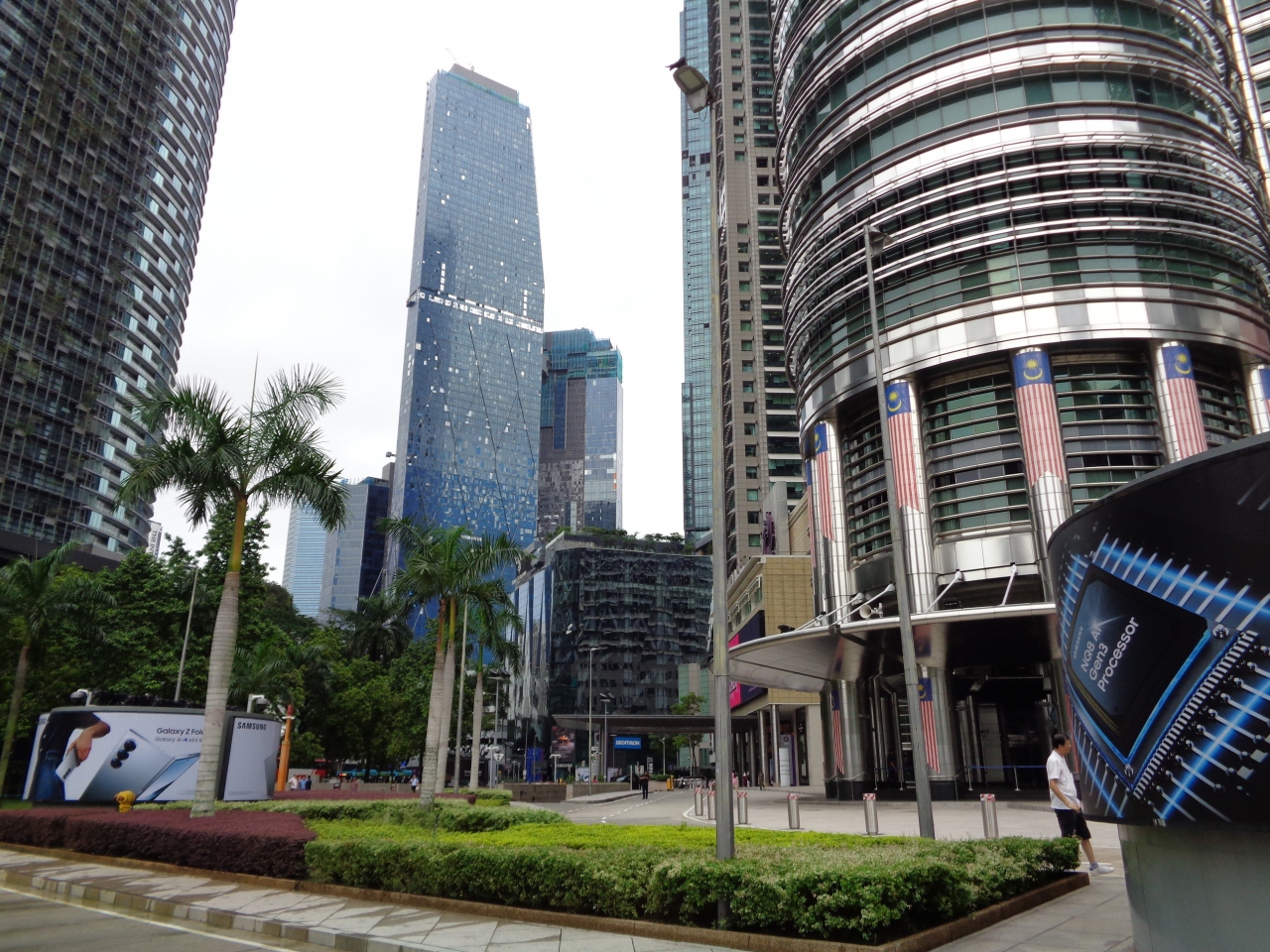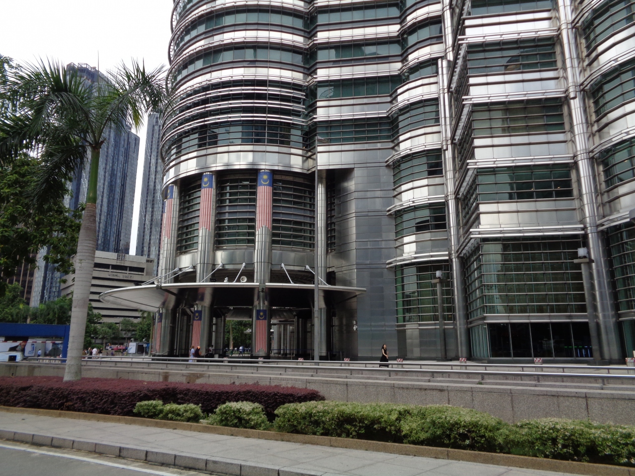 近くで見るペトロナスツインタワーは線が太くてメタリックでデコボコしている。他で見ない質感のビルで面白い。