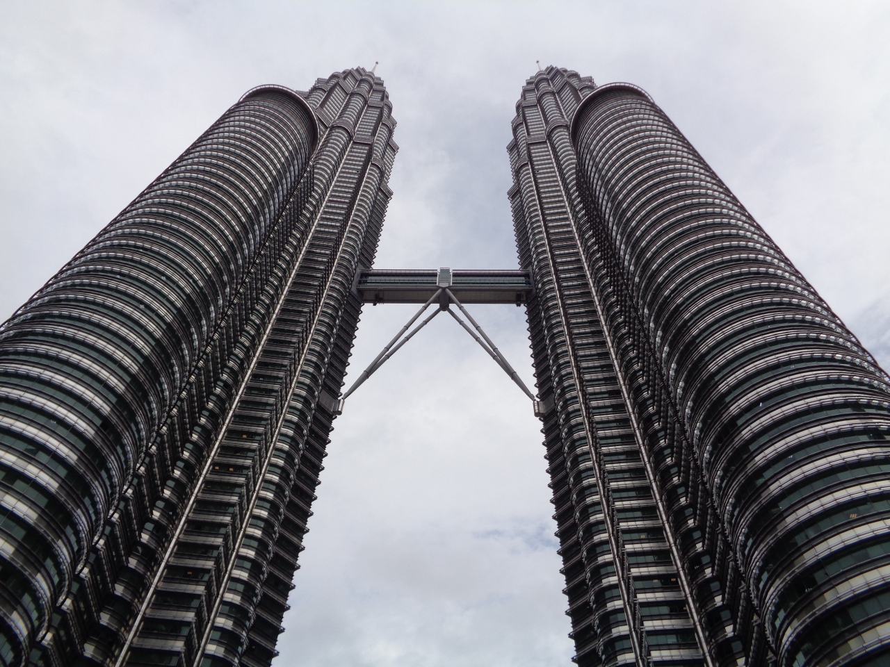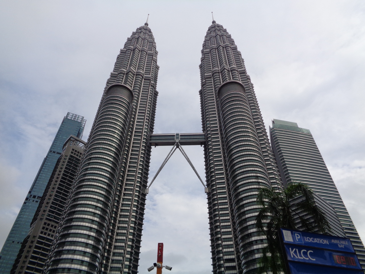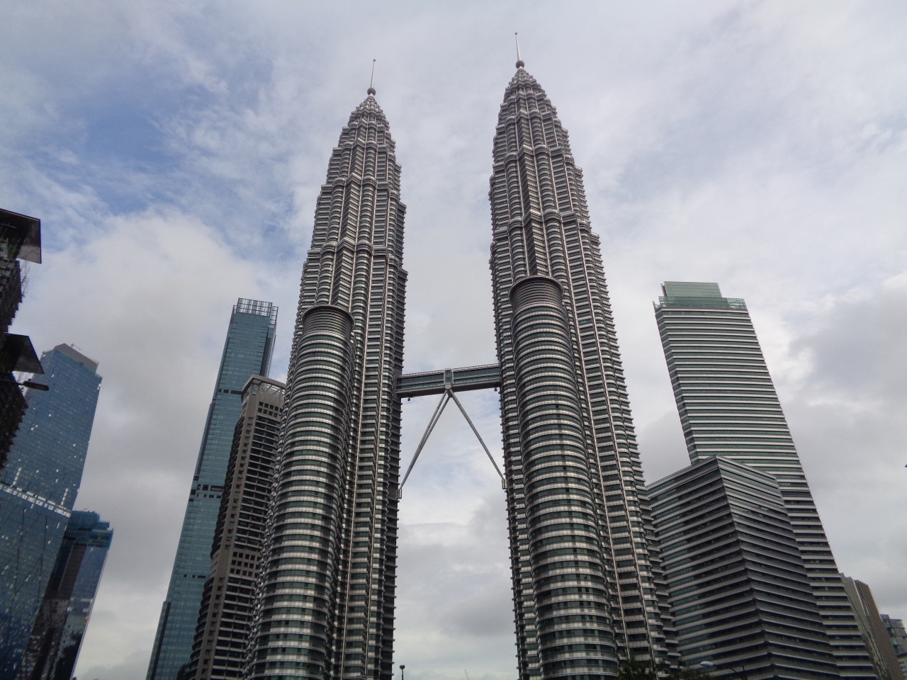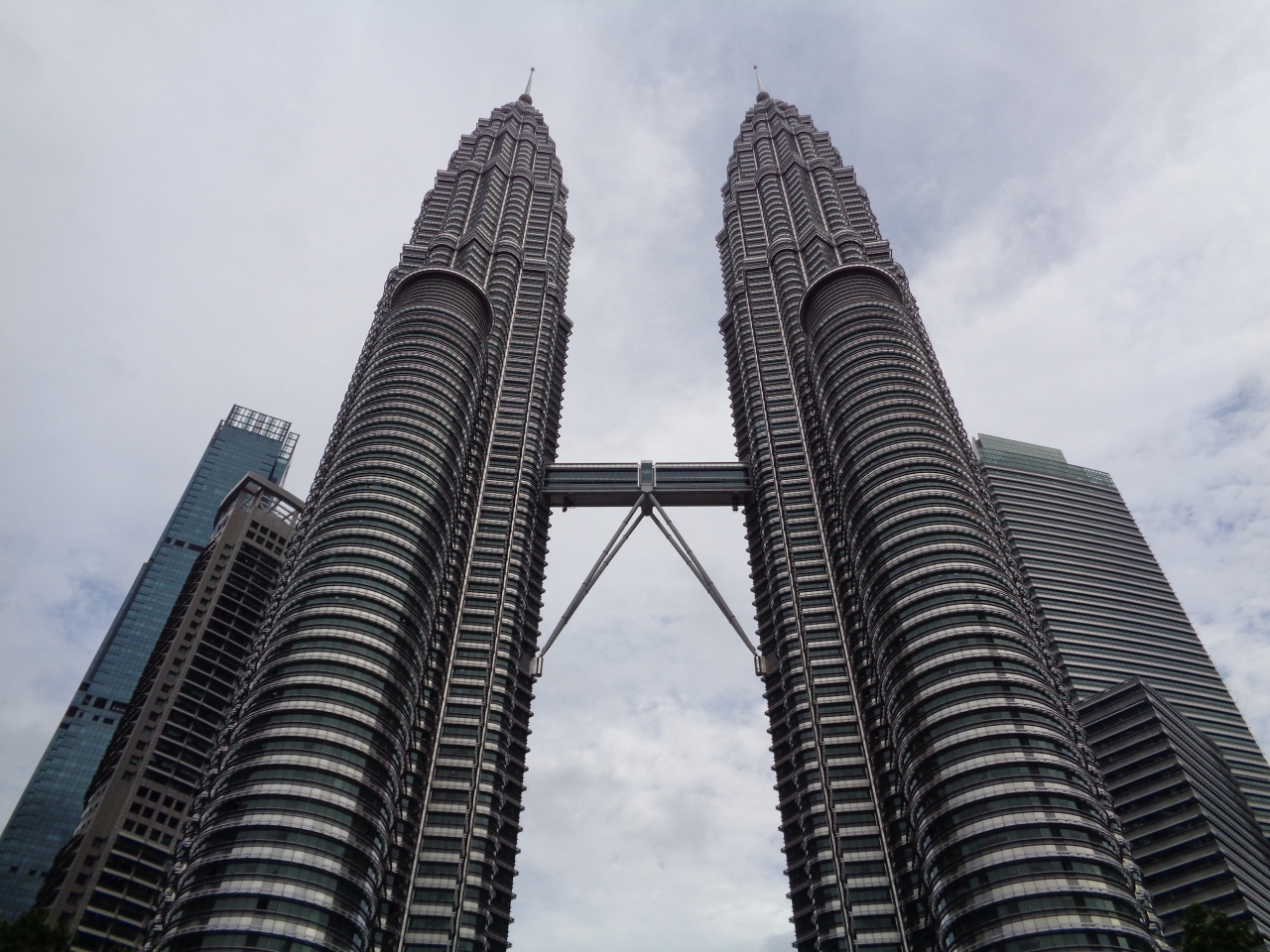 近くで見るペトロナスツインタワーは線が太くてメタリックでデコボコしている。他で見ない質感のビルで面白い。