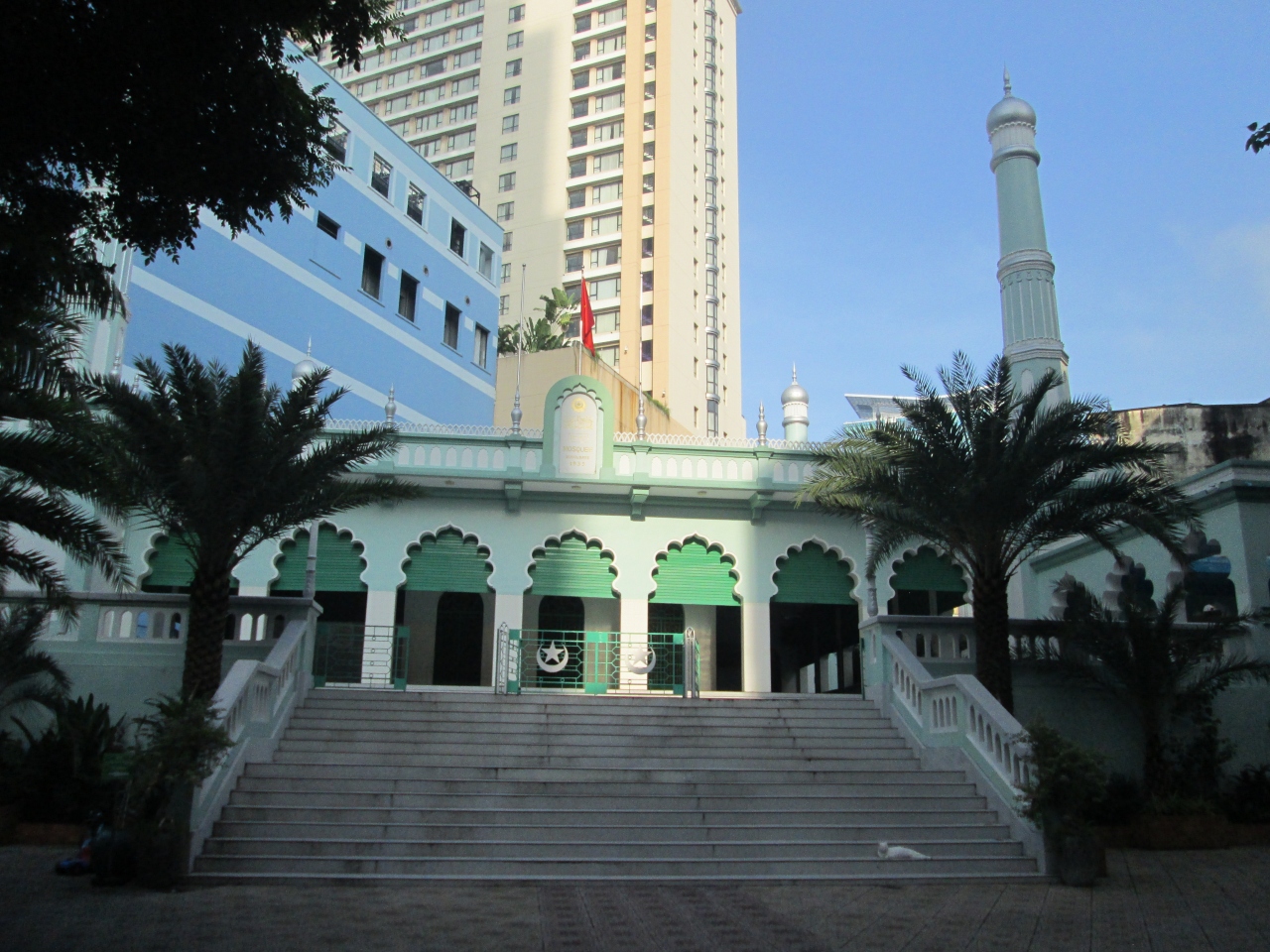 サイゴン セントラル モスクはシェラトン サイゴン グランド オペラ ホテルの裏側にあります。にぎやかなドンコイ通りが近くにあるにもかかわらず、モスク内は静寂に包まれていました。1日6回の礼拝があるようです。モスクですので、短パンとTシャツなどのラフな服装での参拝は不可でした。