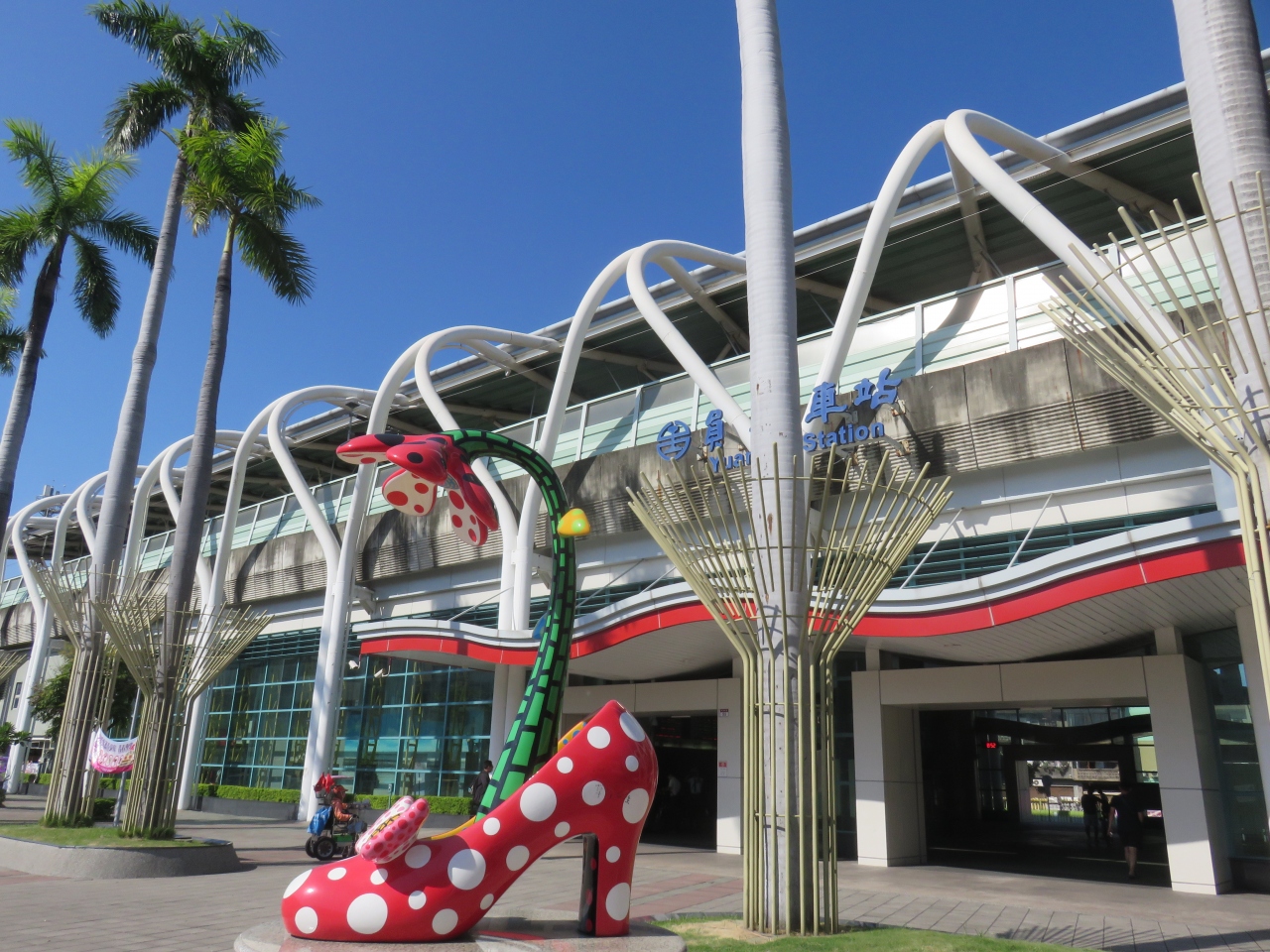 北斗へ向かう際に利用しました。一部の自強号を除き全ての列車が停車します。彰化県南部の中心駅でもあります。2014年に高架化工事が完了した際に草間彌生のオブジェも飾られたようで、駅前も華やかに感じられました。