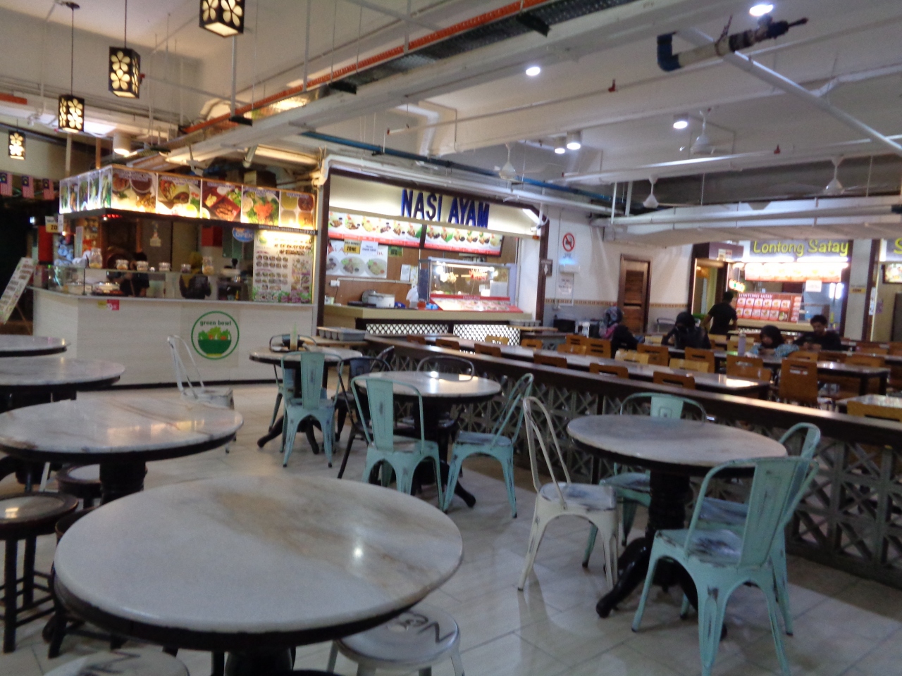 1階にも2階にもフードコートがあって値段も安い。トイレは2階の奥にあって有料、0.50リンギット。