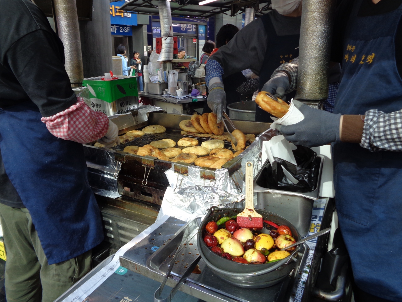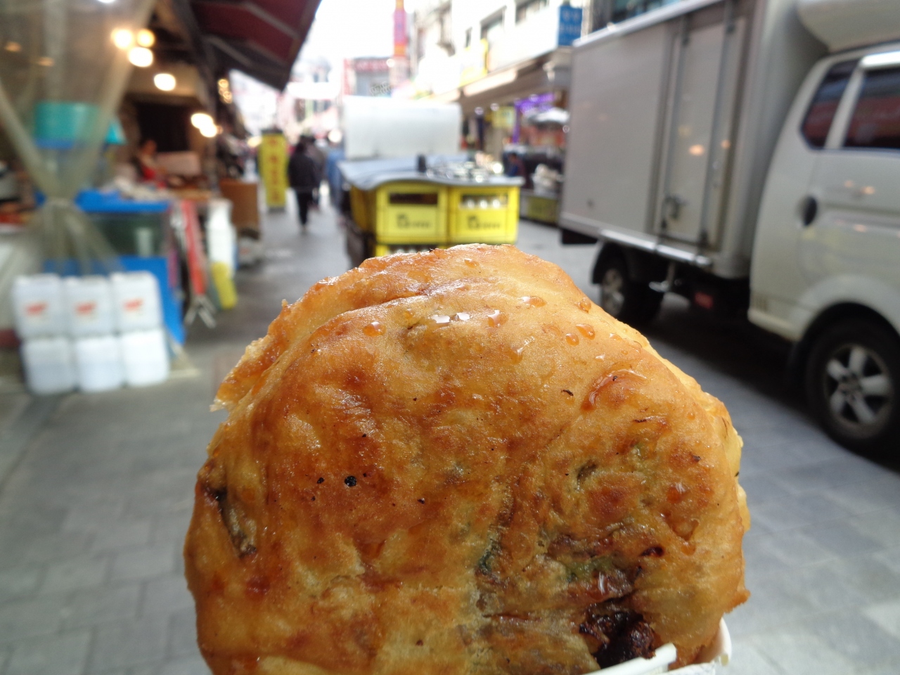 南大門市場を歩いていると、この野菜ホットクを食べ歩きしている人を続々見かけるので、正確な場所が分からなくても簡単に見つけられました。