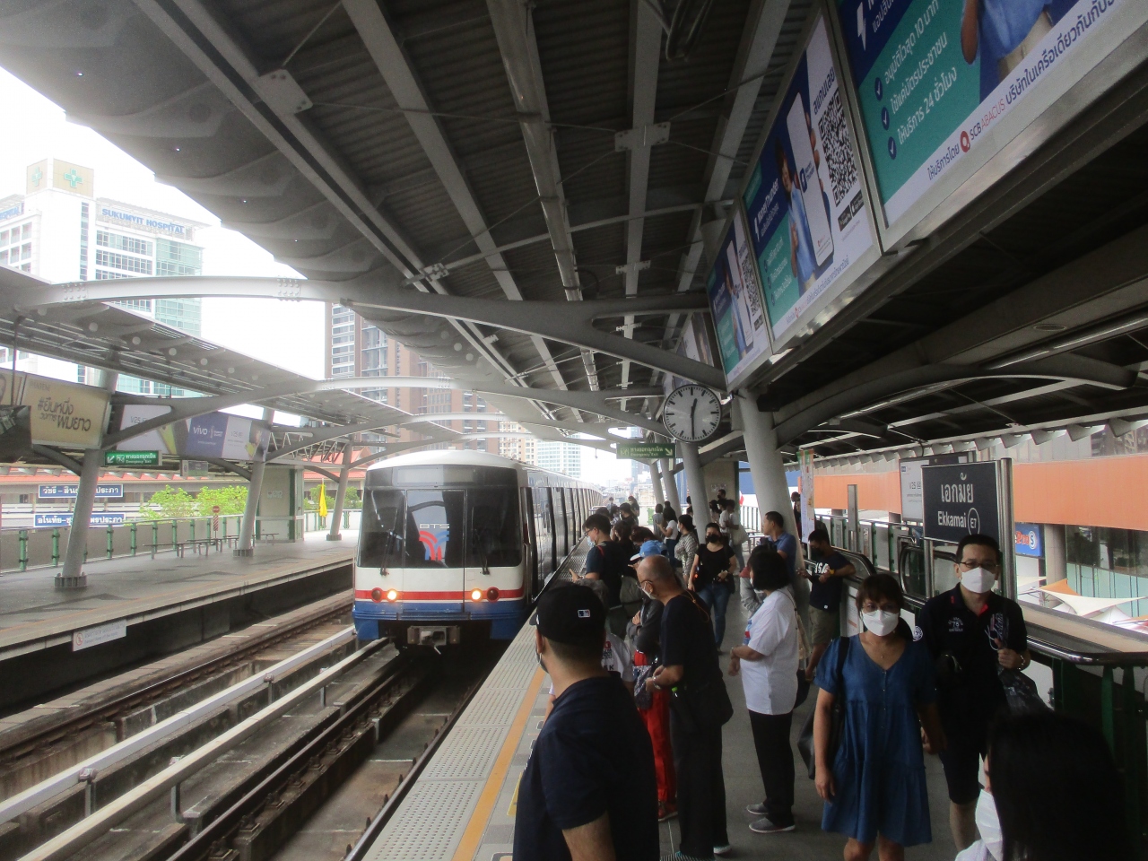 バンコクのBTSはSiemens製の車輌を利用しています。駅ホームに発着するときに、安全柵がないエカマイ駅は難しいはずですが柵の位置にきれいに停車します。日本の都心を走行する電車でも位置が少しずれたり、位置超過をすることがありますが、バンコク鉄道の技術の高さを感じます。
