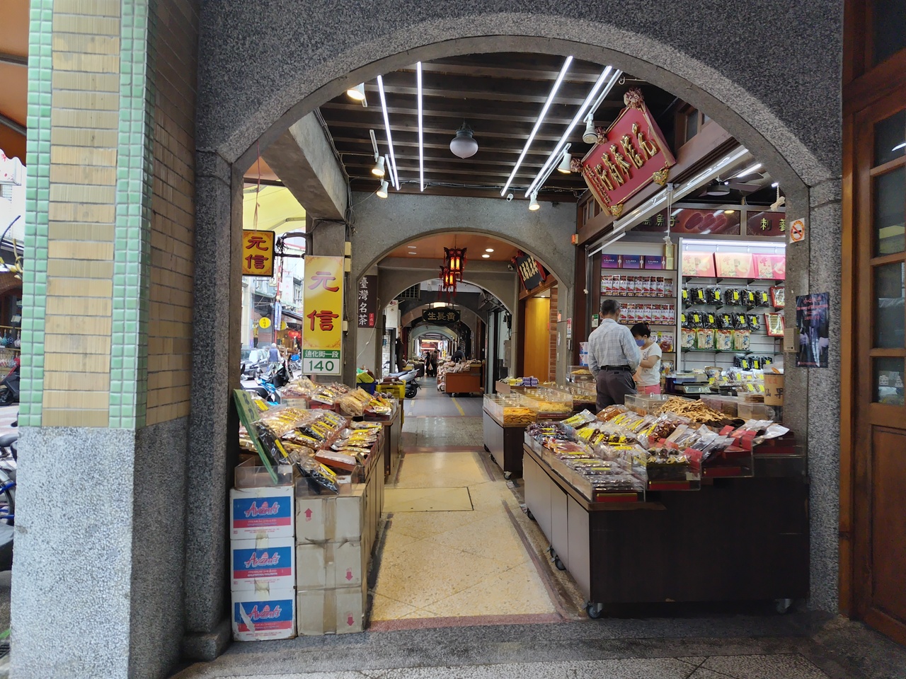 問屋街でお茶、ドライフルーツ、漢方薬のお店が軒を連ね散策するだけでも台湾を満喫でき好きな場所。