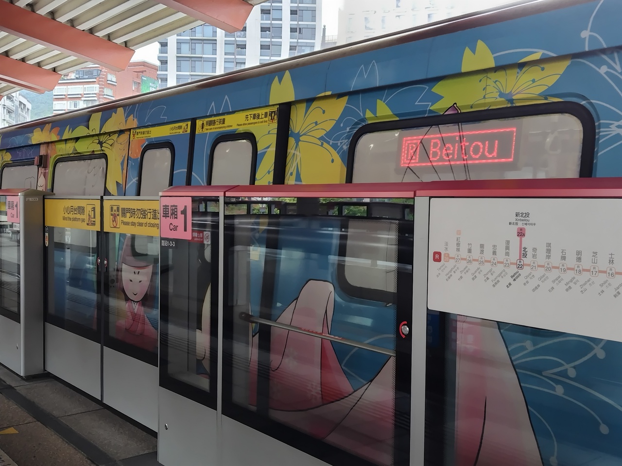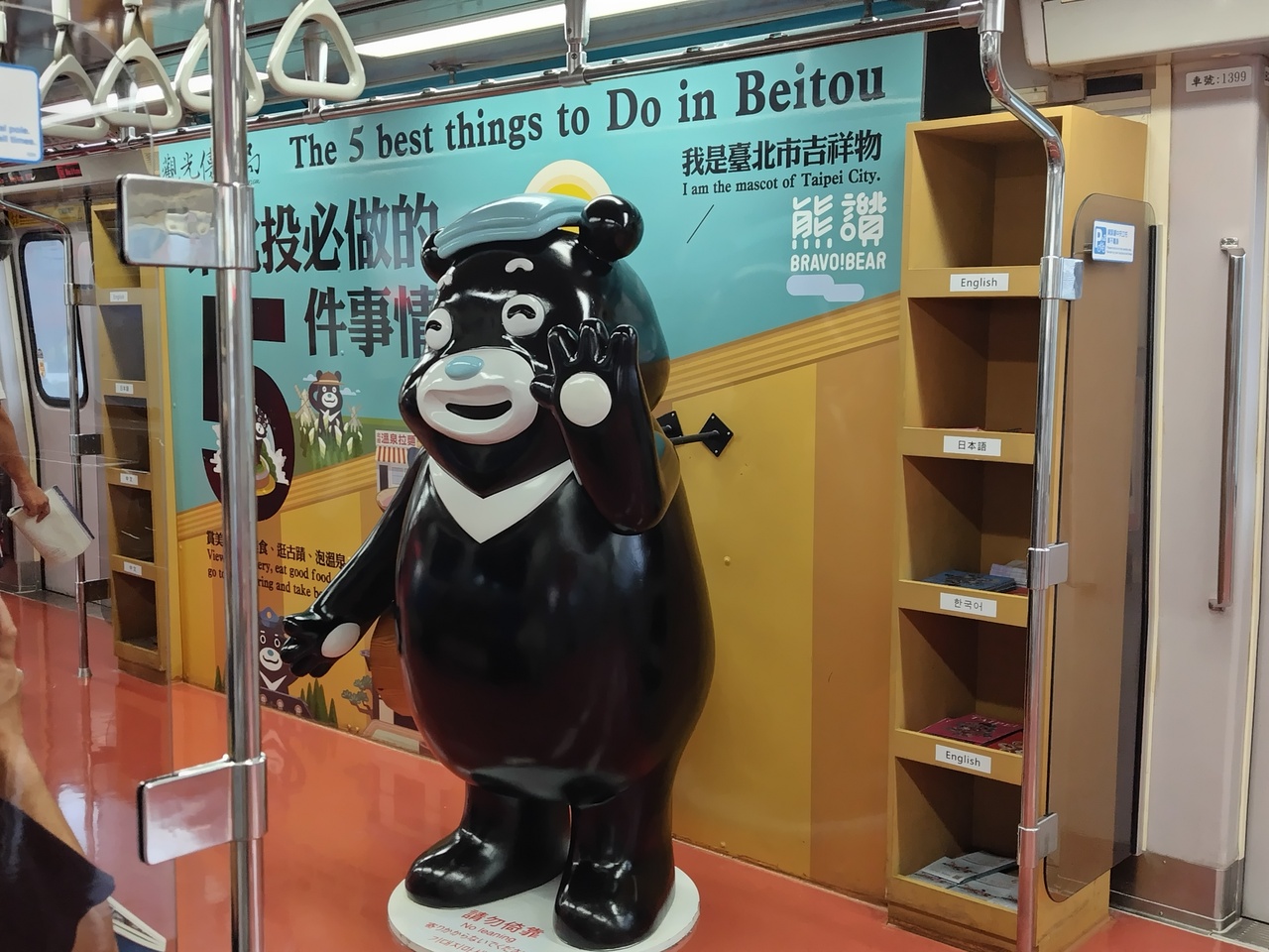 宿泊したホテルからMRTで一度の乗り換えで行きました。新北投駅までの電車内にはキャラクターのクマや湯槽の展示物があり温泉地への気分を盛り上げています。一区間ですが走行速度は遊園地の電車を思い出すものでした。