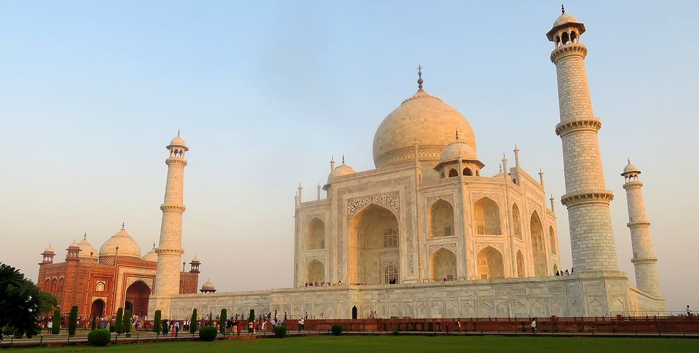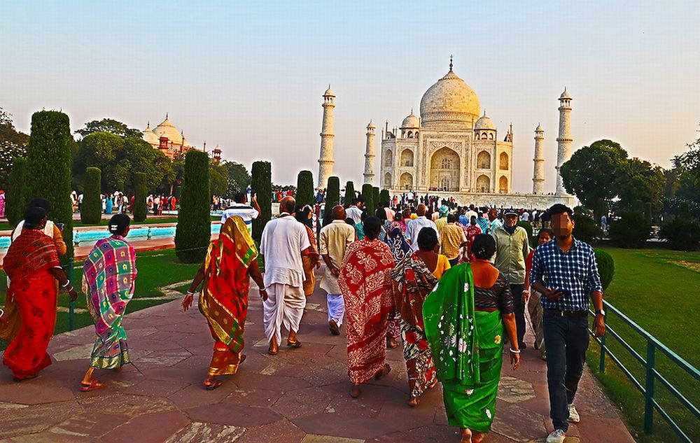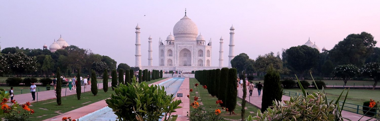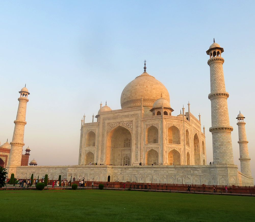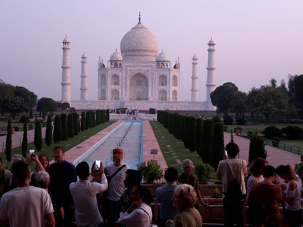 10月中旬土曜日の早朝訪れました。タージマハルは日の出(その日は6時20分)30分前からオープンするので、タージマハル東門に歩いて5分のところに宿泊し、オープンする20分前に東門に着いたら、すでに30人ほどの団体が並んで待っていました。チケットは日本を発つ前に公式サイトから購入済みだったので、直接その列に並びました。その後続々と人が並び長い列ができていきました。6時ちょっとすぎには門が開き、男女に分かれてセキュリティチェックを受け、無事タージマハルを空いているうちに見ることができました。見ているうちに日が昇り、朝日を浴びるタージマハルは実に美しかったです。なおチケット売り場で受け取る水のボトルとシューズカバーは、列に並んで待っている間に複数で訪れている場合はその代表が全員のEチケットを持参して、少し離れたところにあるチケット売り場横のカウンターへ行けば、受け取ることが出来ます。一人で訪れている人の中には、靴を手に持って入場している人もいました。水に関しては、私達はボトルの水は手づかずだったので、朝早いうちならもらわなくても見学はできると思います。