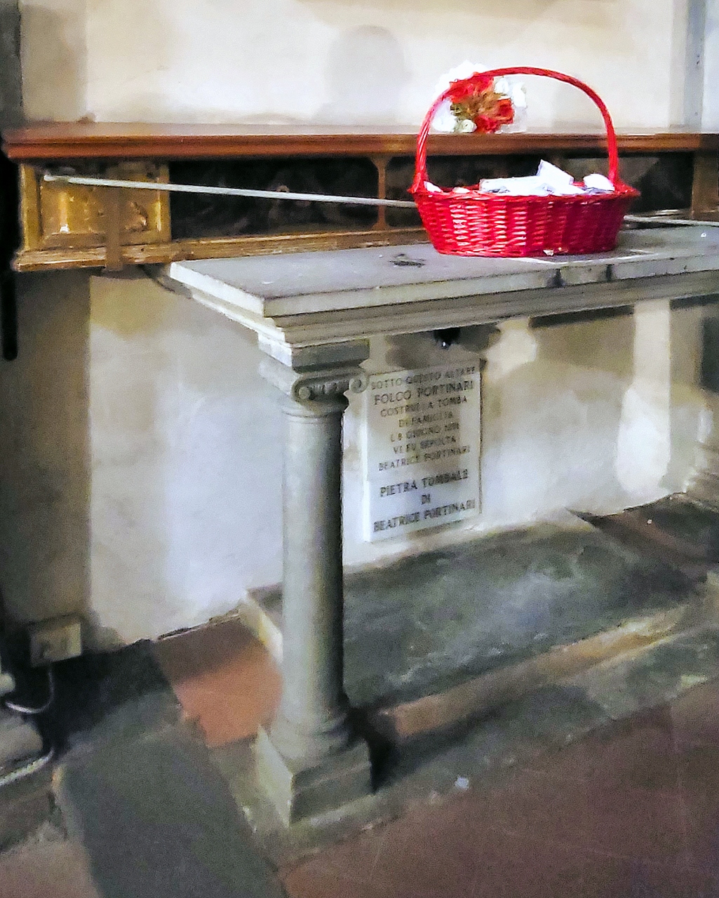 2018年以来の再訪です。土曜日の午後1時に訪問した前回は入れませんでしたが、今回は平日の午前中に訪問して入ることができました(入場無料です。)。ダン・ブラウンの『インフェルノ』効果はもう薄れているでしょうが、ダンテに関連した施設ということもあって、訪問時も多くのツアー客が来ていました。教会自体は、簡素な外観で、内部もやや薄暗く、目を引くようなインテリアはありませんが、身廊左側の床にある、ダンテの永遠の思い人、ベアトリーチェの墓はやはり見逃せません。『インフェルノ』に登場する、彼女への祈りの手紙を入れる籠も、台の上に置かれていました。