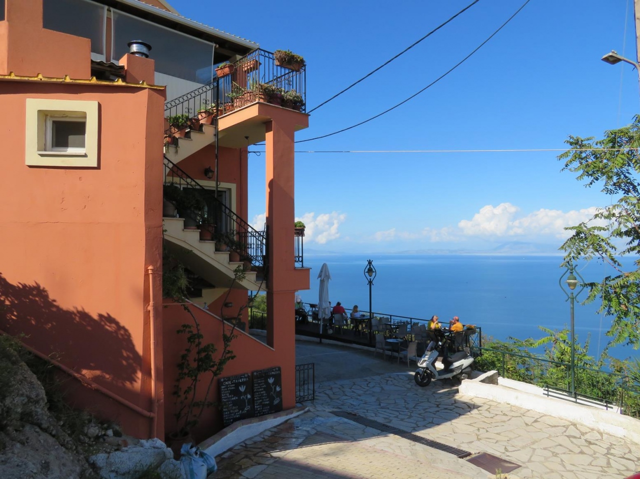 ≪ケルキラ島(コルフ島)のバルコニー≫と呼ばれる村の眺めのいいカフェ・レストラン