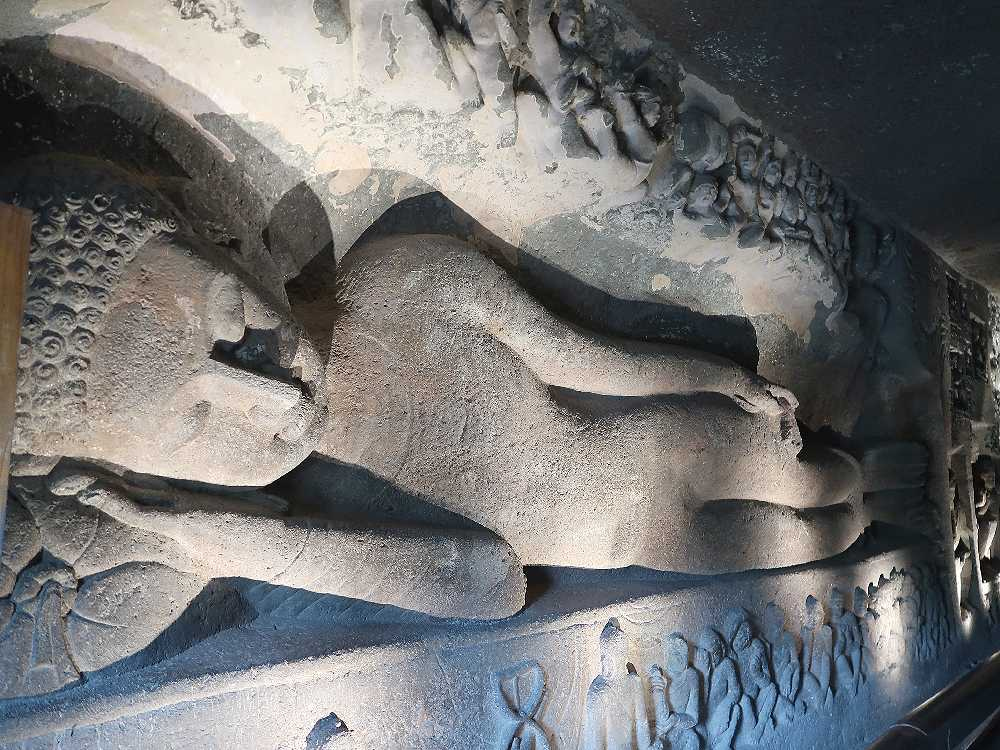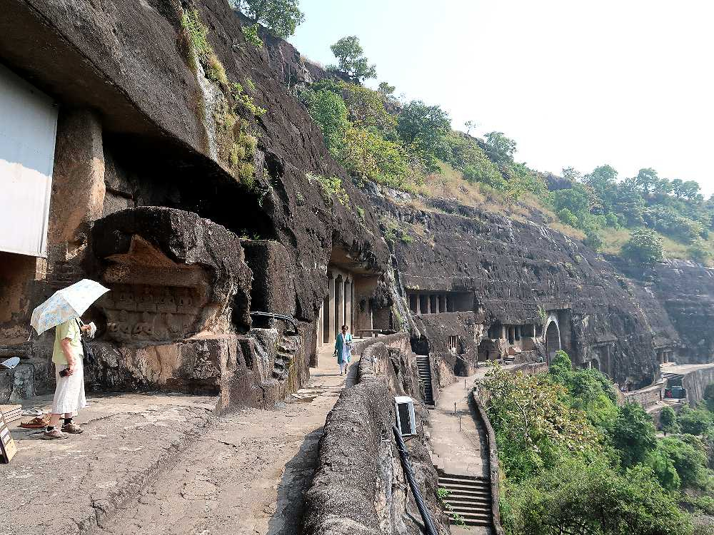 10月下旬、アウランガバードのバスターミナルから5時半発のローカルバスで訪れました(125ルピー(230円))。途中休憩を入れて2時間半で遺跡入口に着くことができました。その後シャトルバスで移動して、入場しました(600ルピー)。入場するとすぐに急な階段が待ち受けていて、登るのはかなりきつかったです。4人がかりで運んでもらっている人もいました。登り切ればあとは若干のアップダウンはありますが、川沿いの崖上にできた道を歩いて見学するようになっています。途中石窟の中以外は強い日差しを避ける日陰がないので、帽子や日傘が必須です。午前中の早い時間でも日差しが強かったので、できるだけ早い時間に訪れることをお勧めします。ただ、5時半のバスで行くと、9時始発のシャトルバスを1時間以上も待たなければならなかったので、6時発のバスでもよかったと思います。