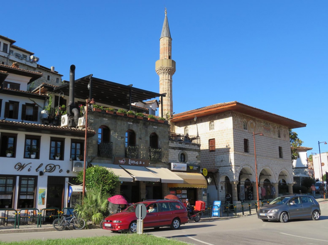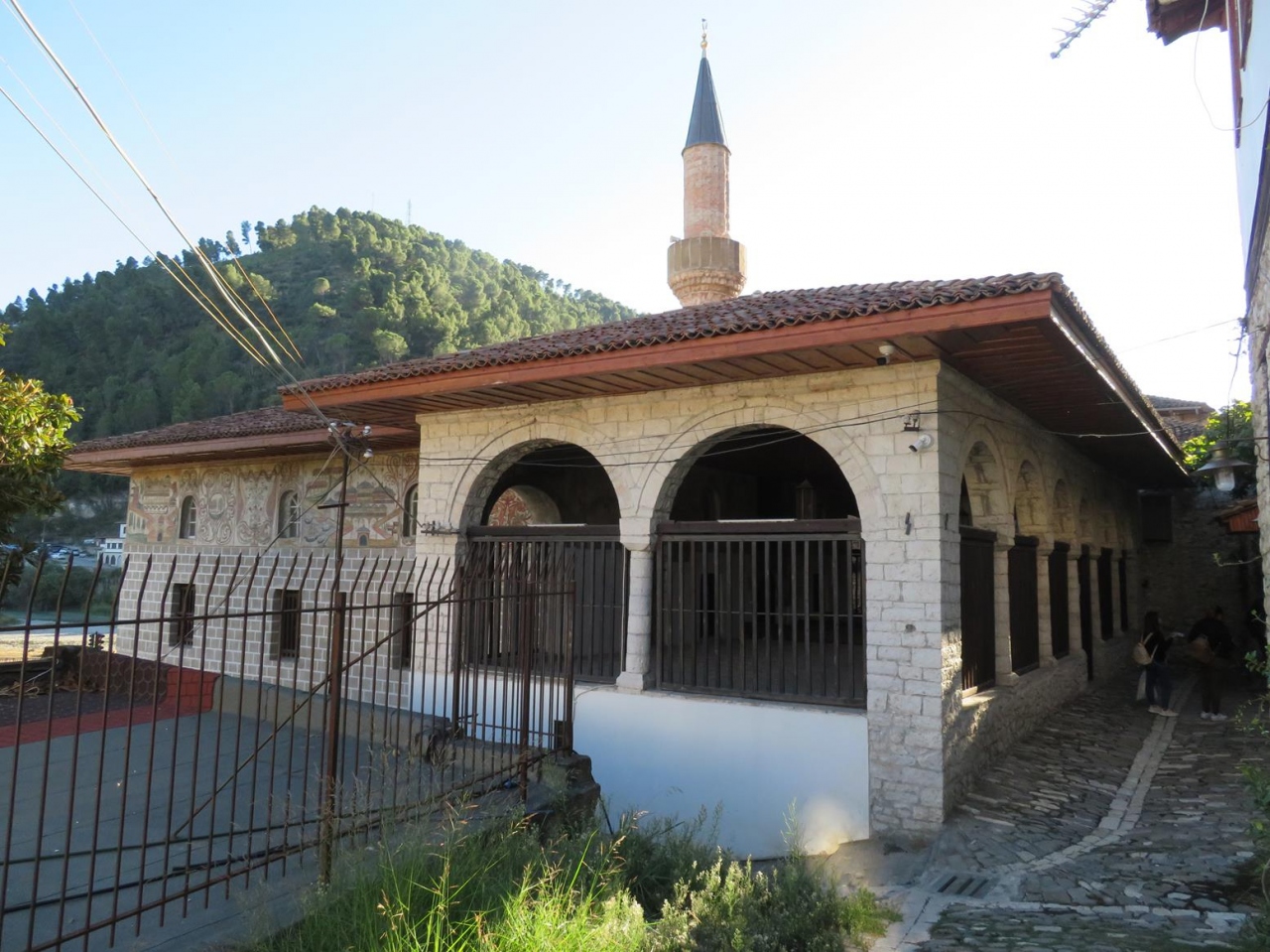 ベラトのマンガレミ地区とゴリツァ地区を結ぶ白い吊り橋のそばにあり、歴史ある町並みの合間に立っているミナレットがまず目に留まります。