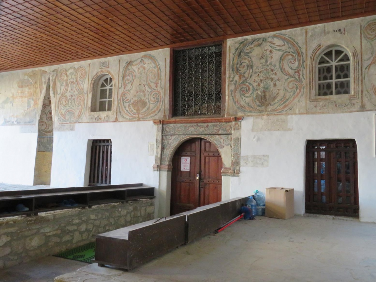 外壁上部に描かれた壁画がユニークなので見上げてみるといいですよ。