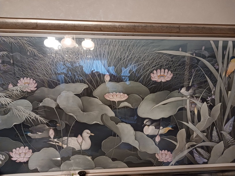 大きな絵は枠から外してぐるぐる巻いて持ち帰れます。小さな絵は手彫りの額が素敵なのでついつい持ち帰りたくなりますが、帰宅したら部屋の雰囲気に合わず、結局額装を替えることになりました。