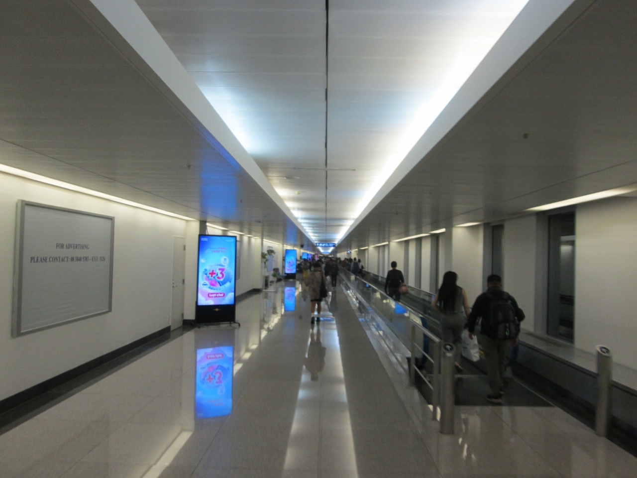 タンソンニャット国際空港は広い空港なので、到着後、駐機場から入国審査場まで長い距離を歩きます。動く歩道が設置されていますが、2人並んで歩けないような幅であり、前の人を追い越すことができないため、スムーズに移動できません。こういった気配りや設計の甘さがベトナムだと感じます。