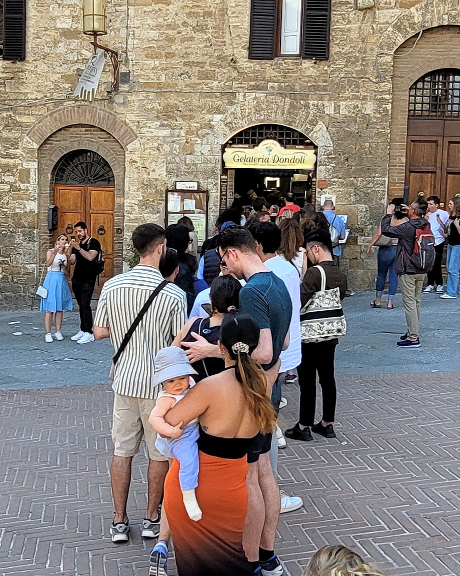 サン・ジミニャーノのチステルナ広場にあるジェラート屋さんで、ジェラートの世界選手権で連続して世界一になったというお店です。いつも行列ができる人気店ということで、私たちが訪問したときも行列になっていました。観光時間の都合で並ぶかどうか迷いましたが、非常に回転がよく、それほど待たずに購入することができました。家内はレモンとヨーグルトのジェラートを、私はココナツとピスタチオのジェラートを、コーンでいただきました。さすがに世界一のジェラートということで、食べた後にお水が欲しくなるということもなく、美味しく堪能し、旅の記念になりました。