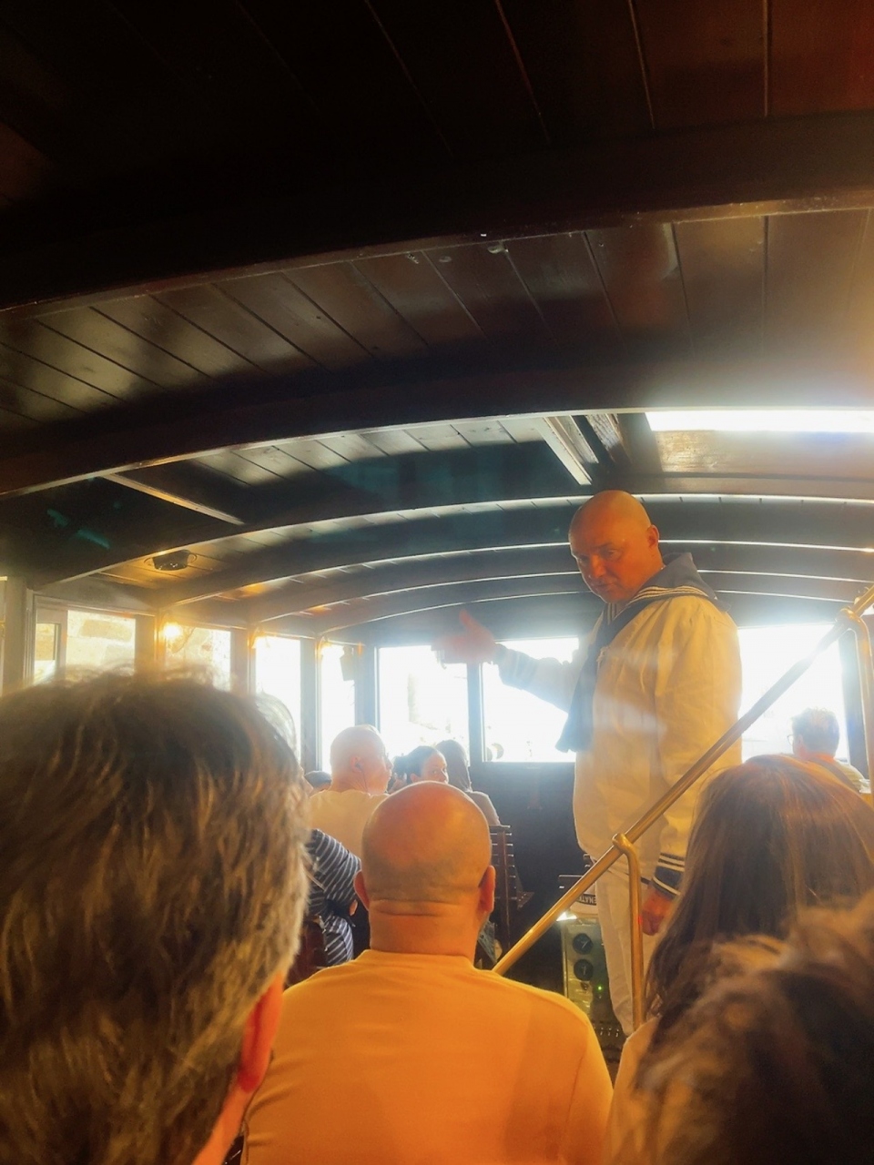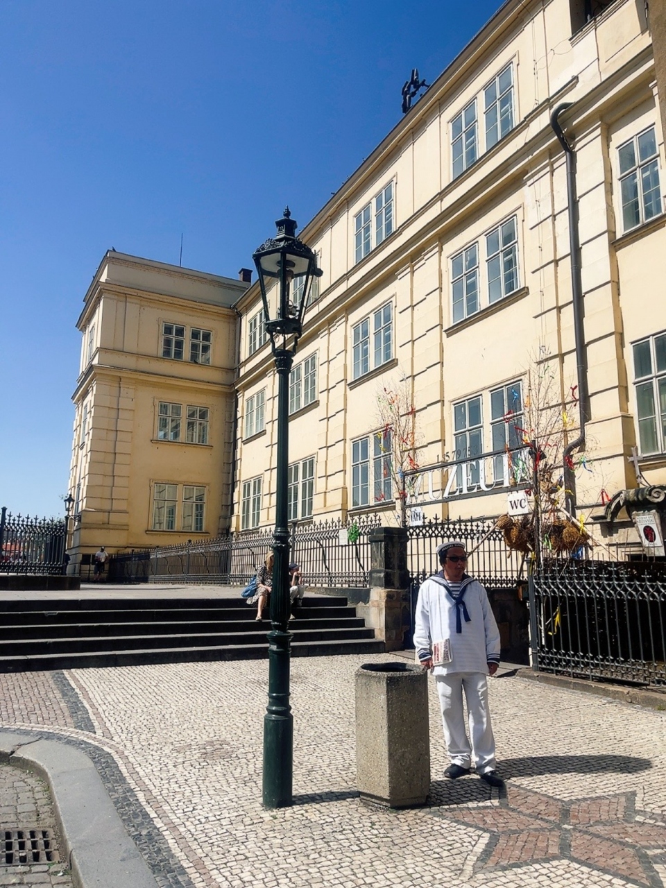 旧市街橋塔のすぐ目の前で、朝から元気よく客引きをしている水兵さんの格好をした遊覧船会社のスタッフがいて、その人に声をかけたらツアー申込デスクまで案内してくれます。