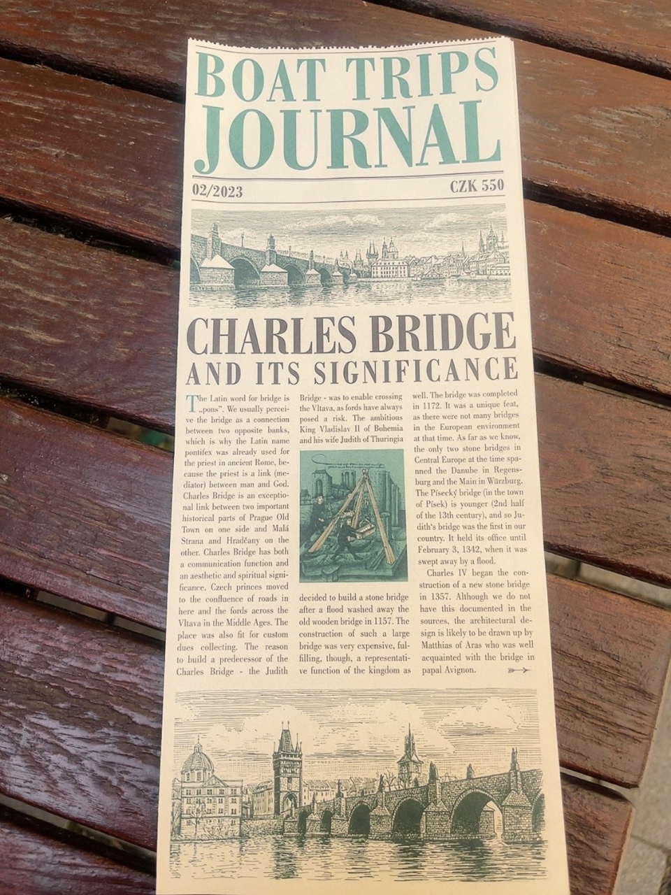 チケットを購入したら、5分後に出航する遊覧船に乗れちゃいました! 拍子抜けなくらいのスムーズさです。 Boat Trips Journalという新聞のようなものが、チケット代わりとなります。 550コルナでした。