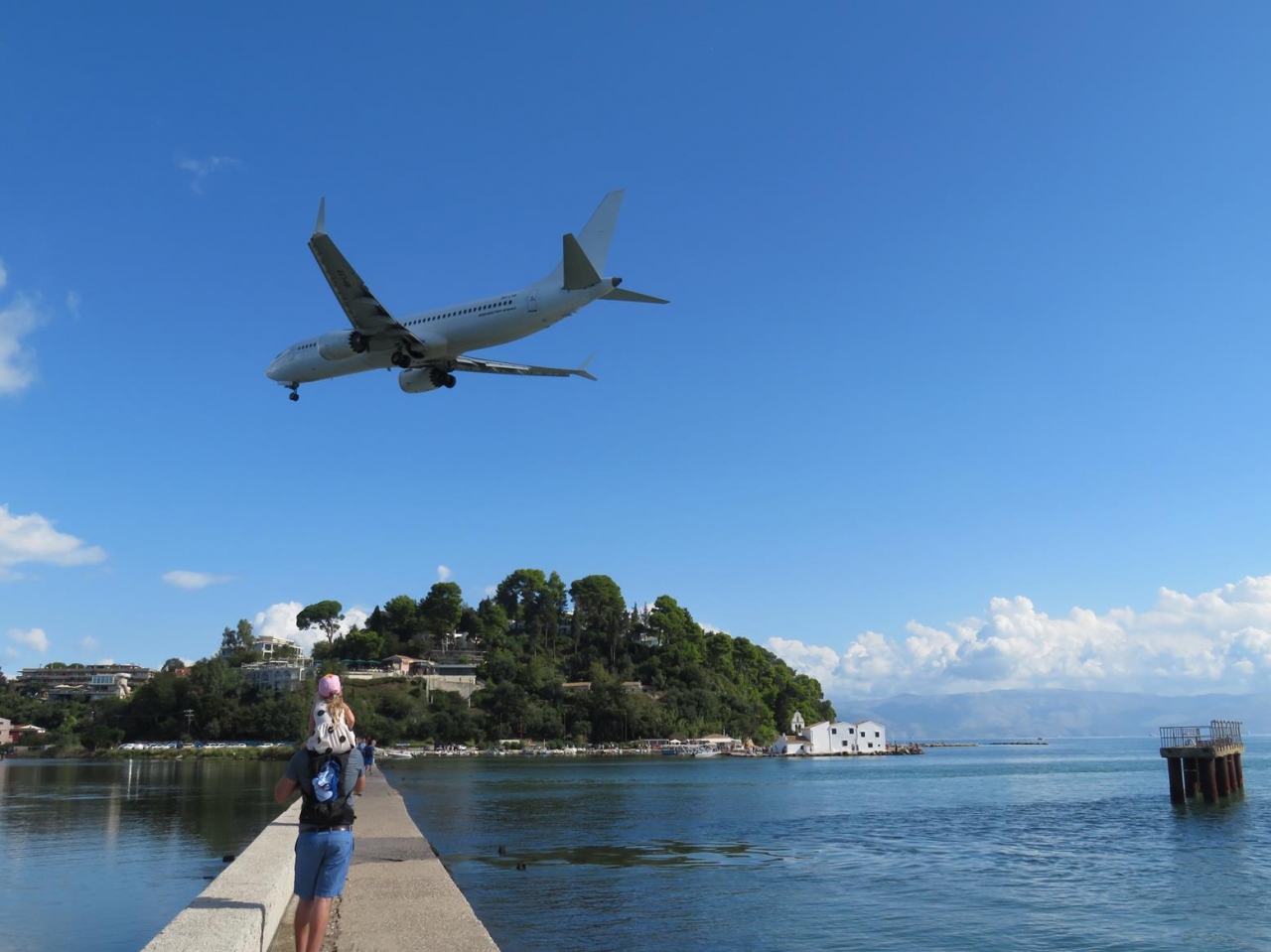 この橋はコルフ国際空港に発着する飛行機の撮影スポットにもなっているので、ここを渡って行き来する人より、飛行機見物目当てにやって来る人多し。