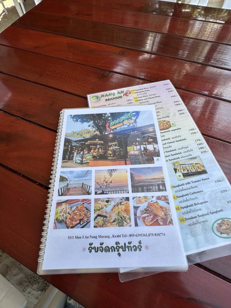 この地域は、海(浜辺)に面したタイ料理(海鮮系)が何軒か建ち並んでいた(アオナンビーチの「メインビーチに近い方=騒がしい方=」は、町の作りの関係か、海に面したお店が一軒もない…店の前には必ず通りを挟んでいる…)。