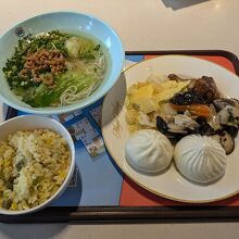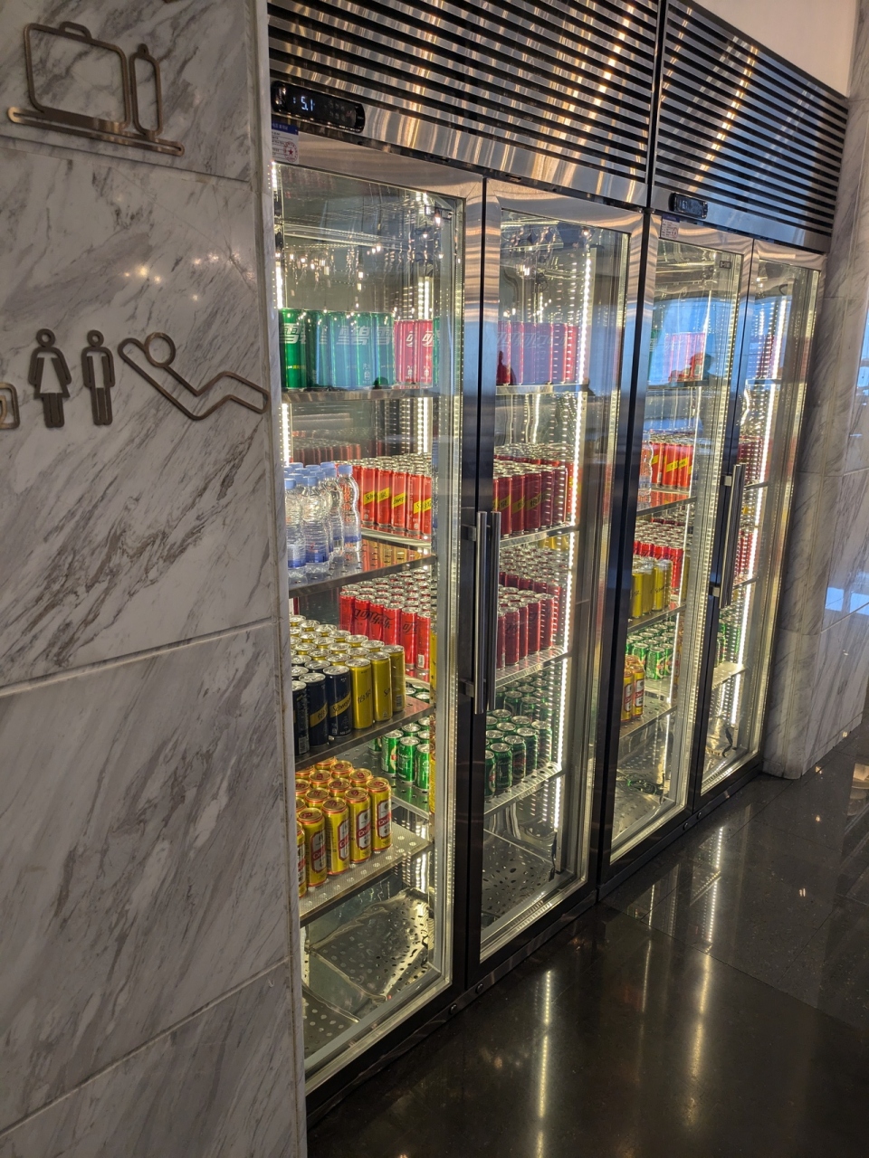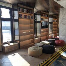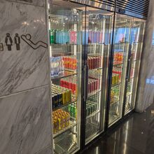 入り口直ぐは、アルコール提供用のラウンジスペースで、少し奥には充実の食事コーナーがあります。
